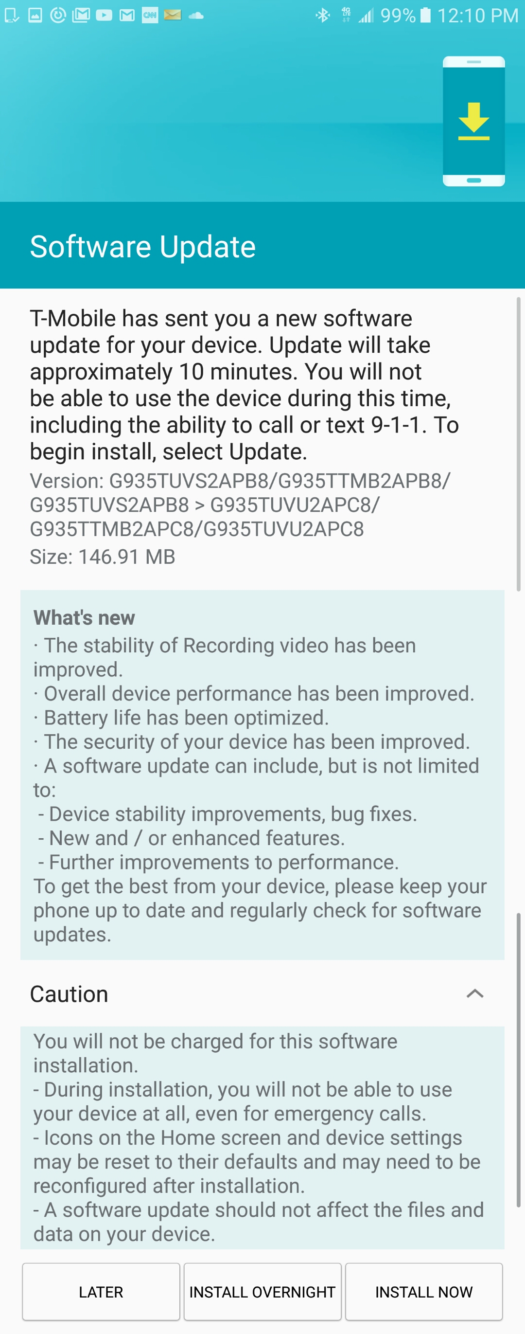 I've had three updates in the one month I've owned my T-Mobile S7 Edge. Nice going T-Mobile!