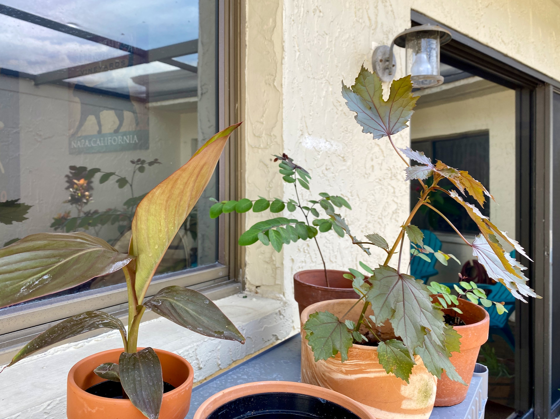 I've managed to get a red canna lily to grow from a seed. It's in the planter on the left.