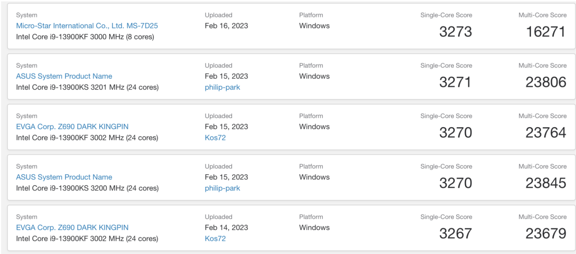 I looked again and only found these, but thought I had seen more previously:Where are you getting 3350 ST for 13900k? It shouldn't be that high. It could just be a highly overclocked and RAM optimized computer.