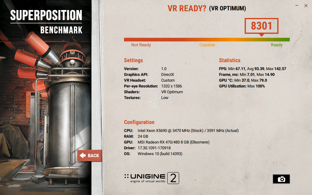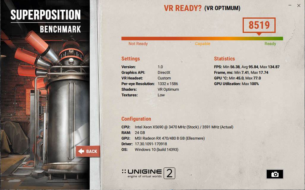 The superposition VR score is interesting. You have higher min and max FPS, but lower average. Anyway, the real single most important to define the gaming experience usually is the min FPS, not the average. So, that's a 18% improvement, looks very good to me.