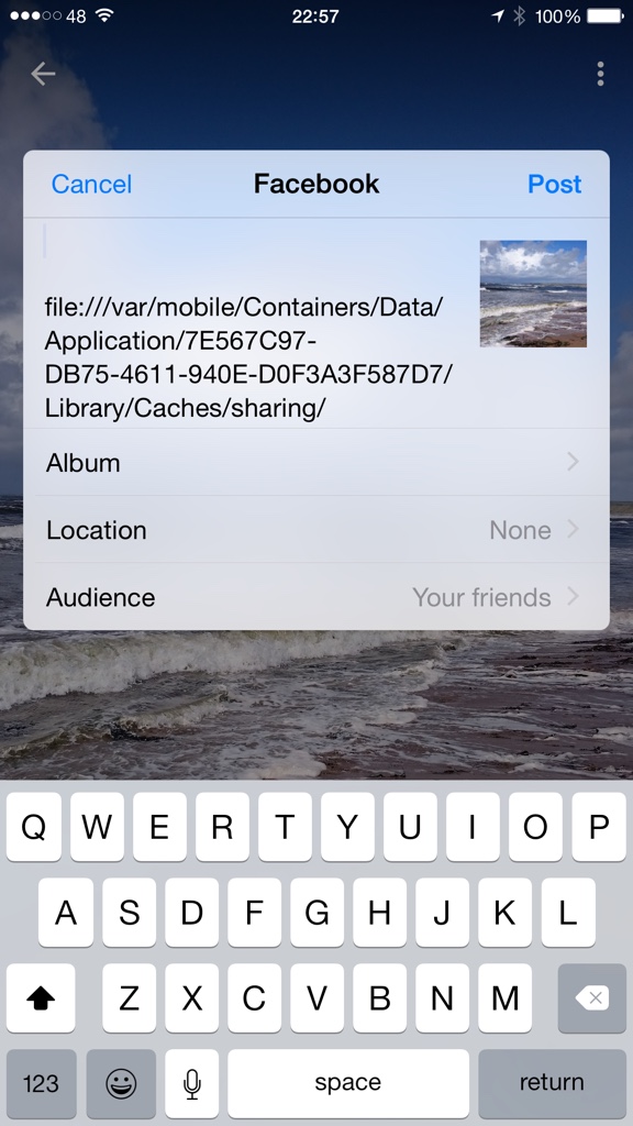 Tried rebooting my phone, same thing. Can't find anything on Google. Will just have to use stock Photos app for FB sharing for now.