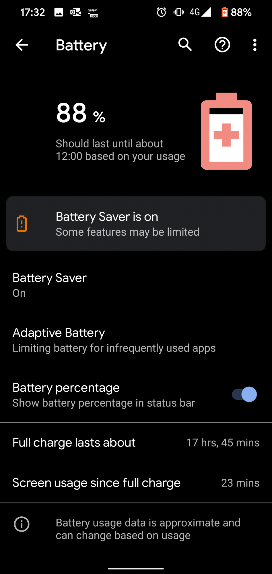 I've now turned battery saver off, AoD back on, and that will easily get me through to bed time now.