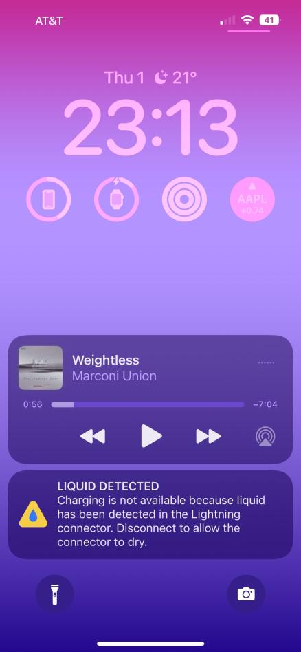 I tried to go to bed, and I cannot charge my phone because there is apparently still liquid in the port.