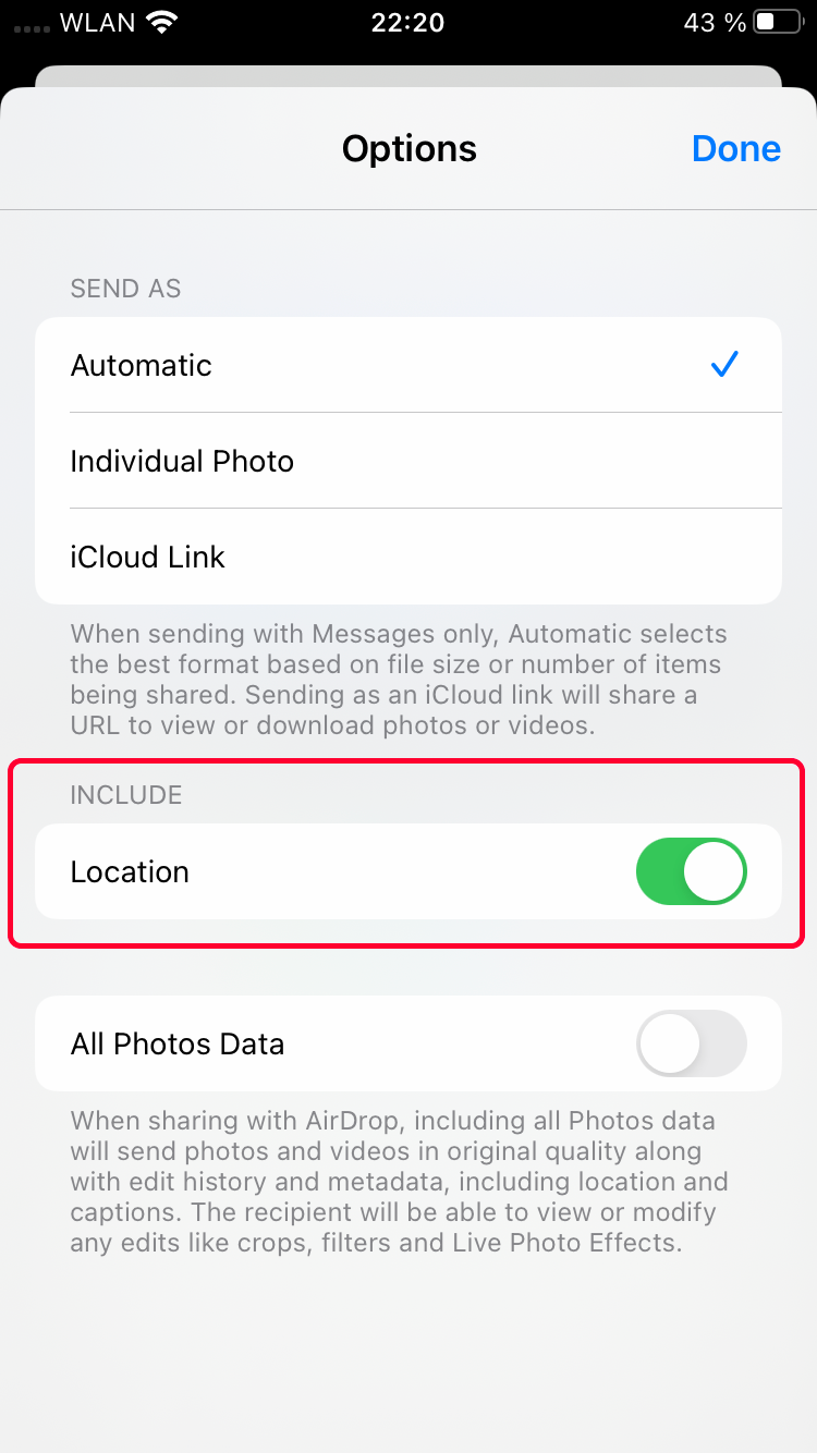 I understand the privacy concern - is location always stripped by Messages for that reason? Can it be overridden by settings at the sender's end, e.g. on an iPhone?
