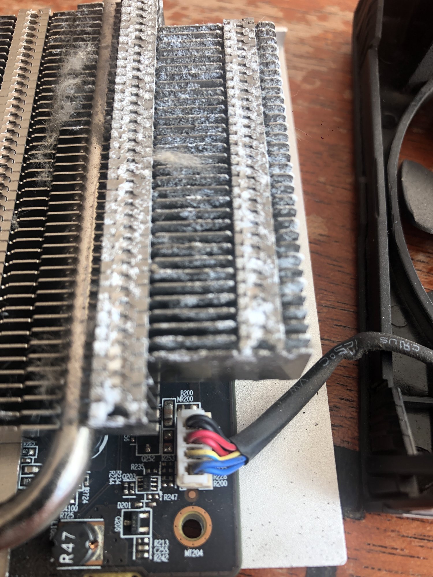 Never knew/realised those were seals, so didn't pay further attention to them and took the fan-enclosure off to look behind the fins. Can't one not just peal the stickers/seals off and open the screws and put them back after tinkering/replacing the heatsink? There is indeed something weird going on.