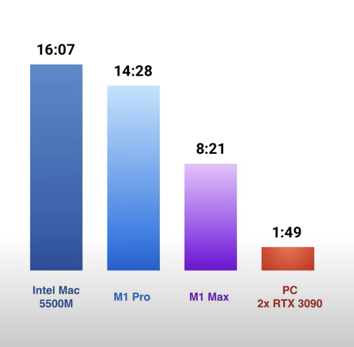 Interesting to think about a 4 x M1 Max chip that would hypothetically give a render time of 2:05, so close enough.