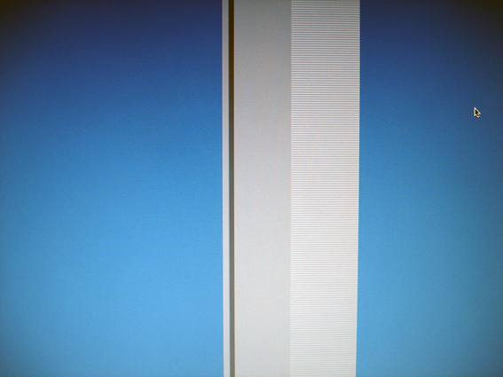 iMac G5 17" (2005). My screen has two grey vertical stripes, about 5 cm wide on the centre of the screen. They appeared suddenly and initially were black. After disconnecting the computer for 7 days while away now the stripes are grey (see attached images). The stripes are not visible in a screen shot! They are always on the same location.