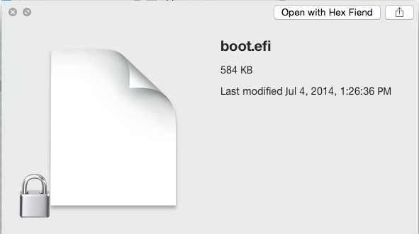 3. Now make another folder called "new_efi" for example, drag boot.efi into that folder. Note that the icon has a lock on it: