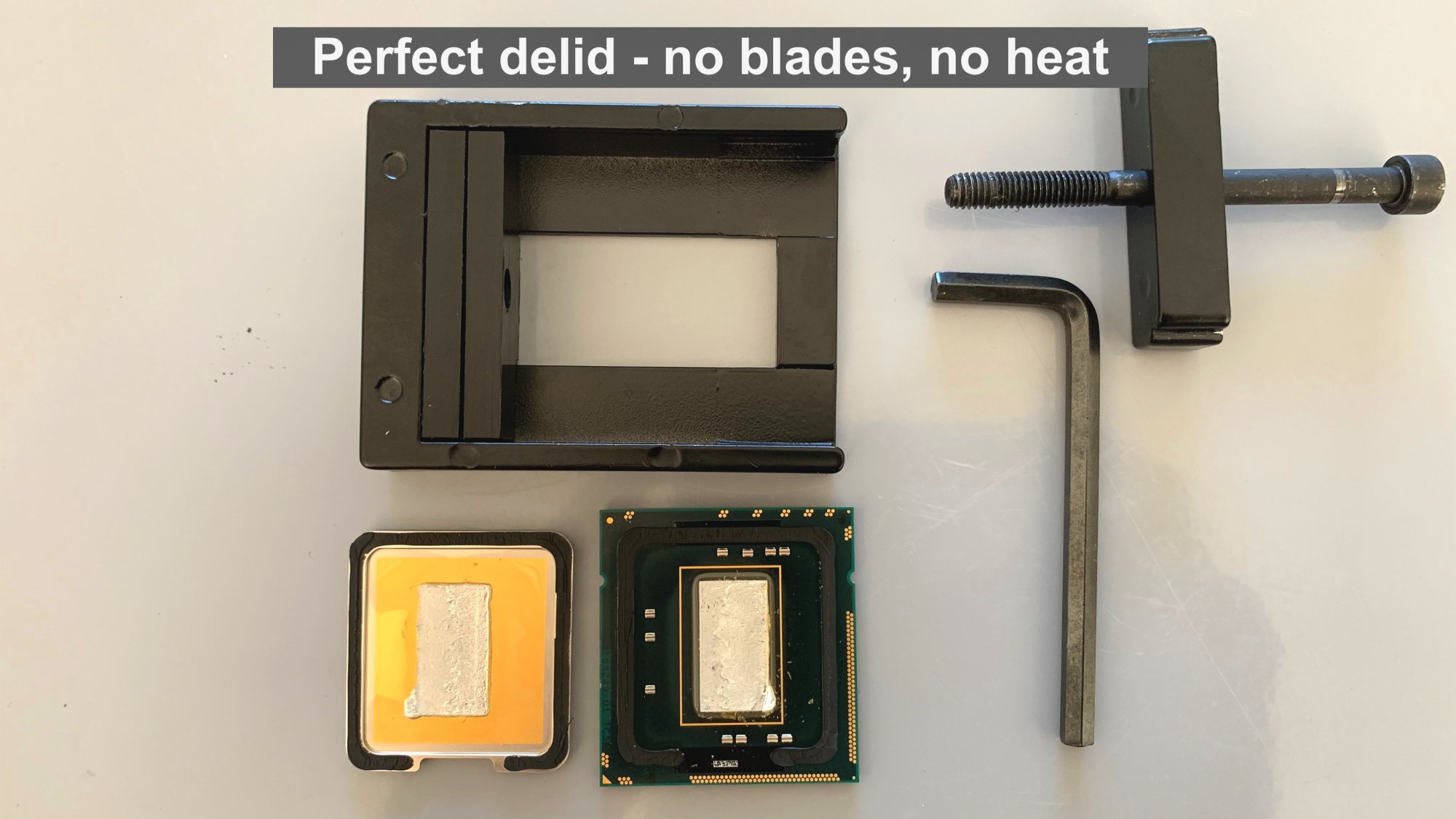 I bought a cheap Delid tool from Aliexpress for £10 (it was £6 + delivery but thanks to Brexit, it nows adds an extra 20% VAT that Aliexpress will never pass back the UK government). 🤷♂️ Ah well but it arrived in 7 days ... wow !