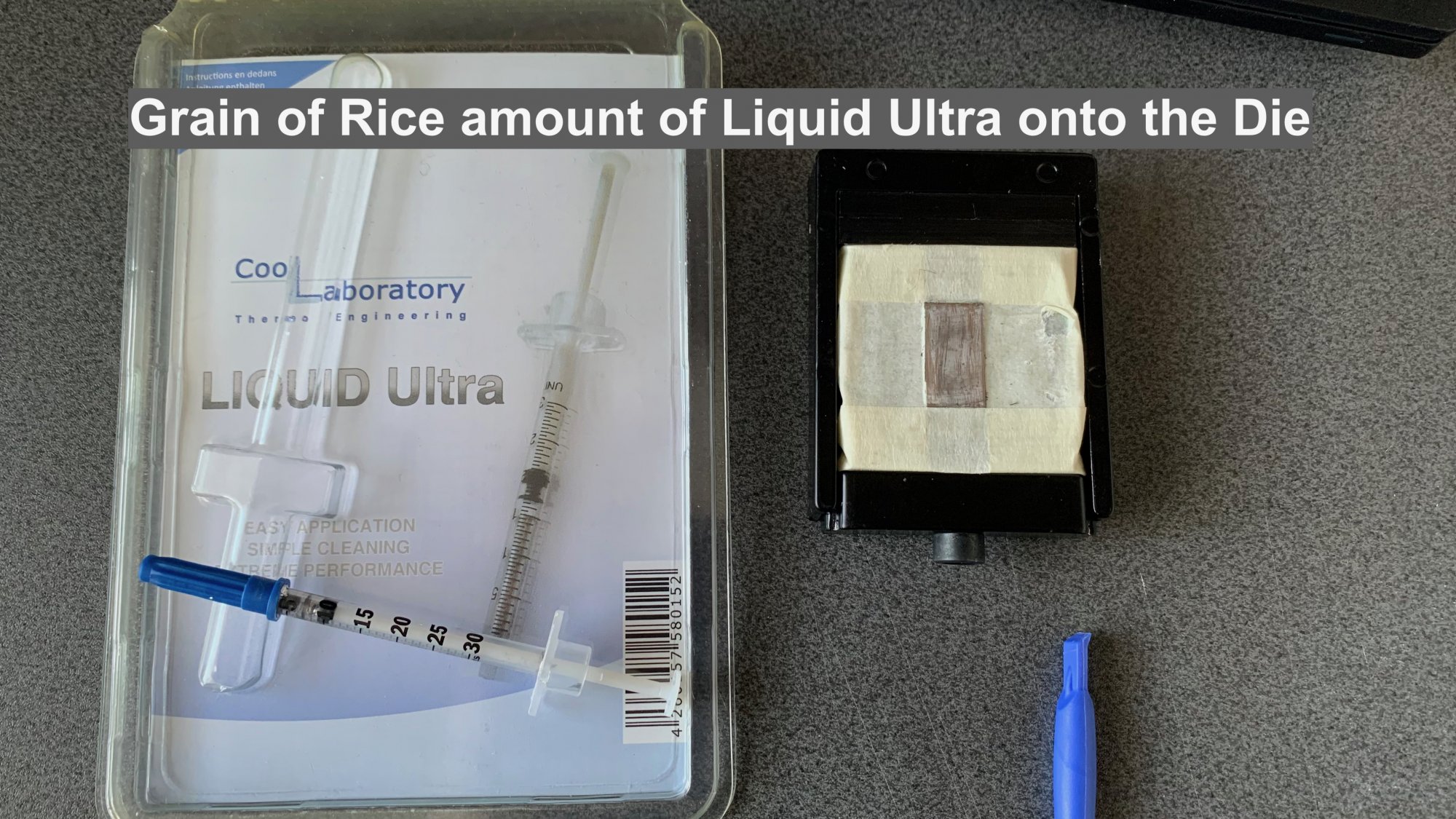 Then I remembered that I had some left-over LIQUID Ultra by Cool Laboratory which is a silver liquid metal that I had used in the past on my i7-3770K die as a thermal interface between the die & the IHS. I thought may be I can use that instead.