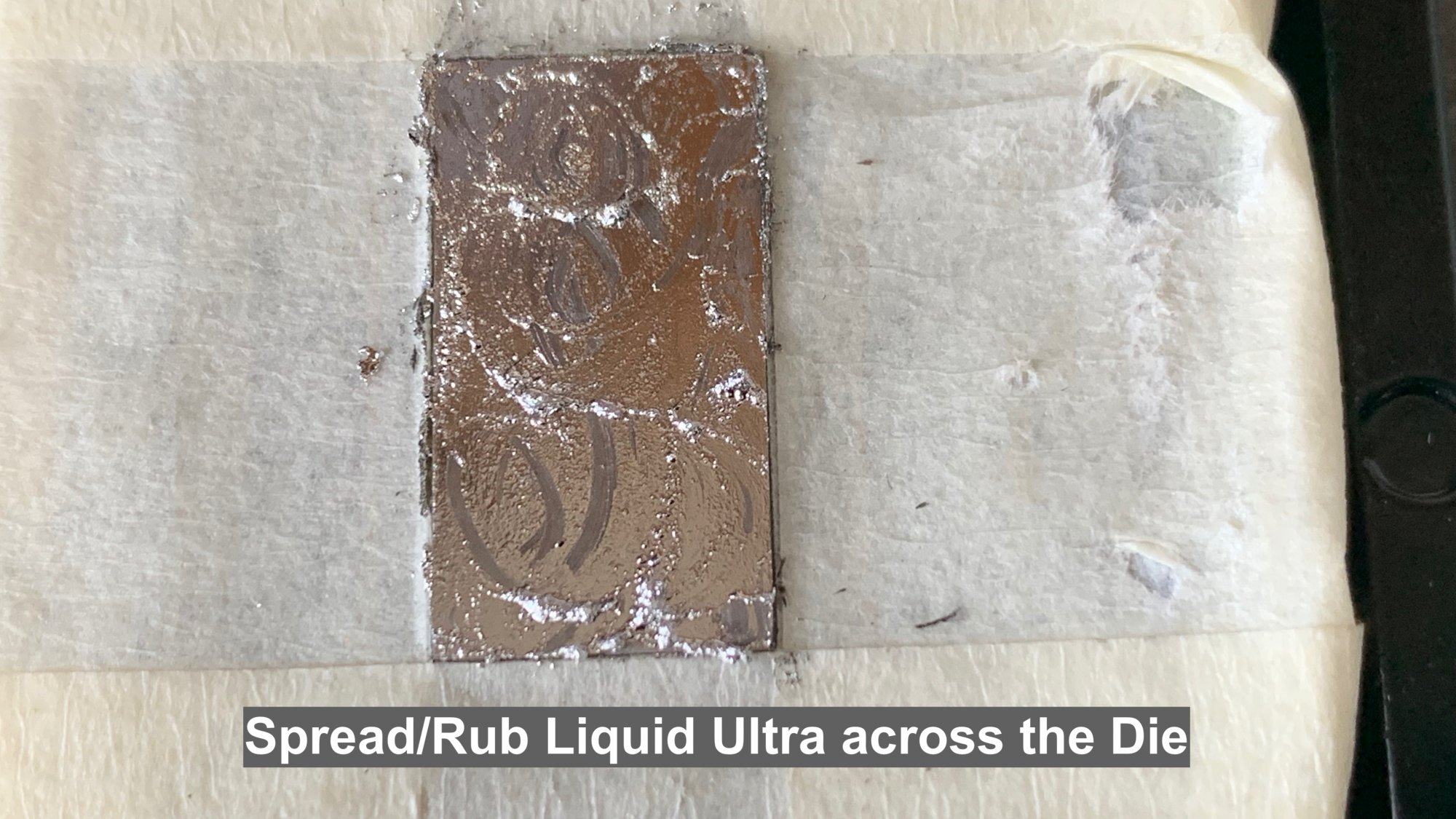 After that I continued to "massage" it on the cpu Die and to my surprise, the solder seemed to be "melting" and as one with the Liquid Ultra silver.