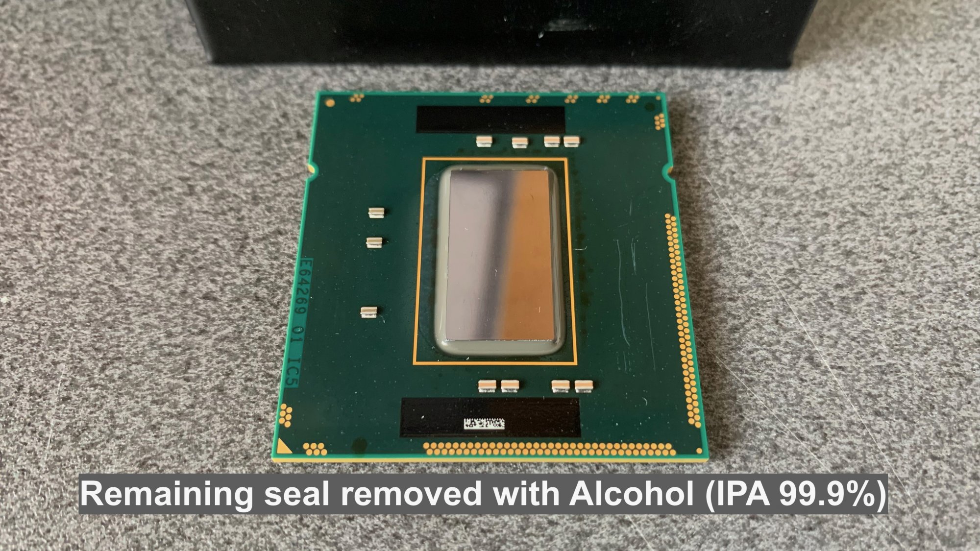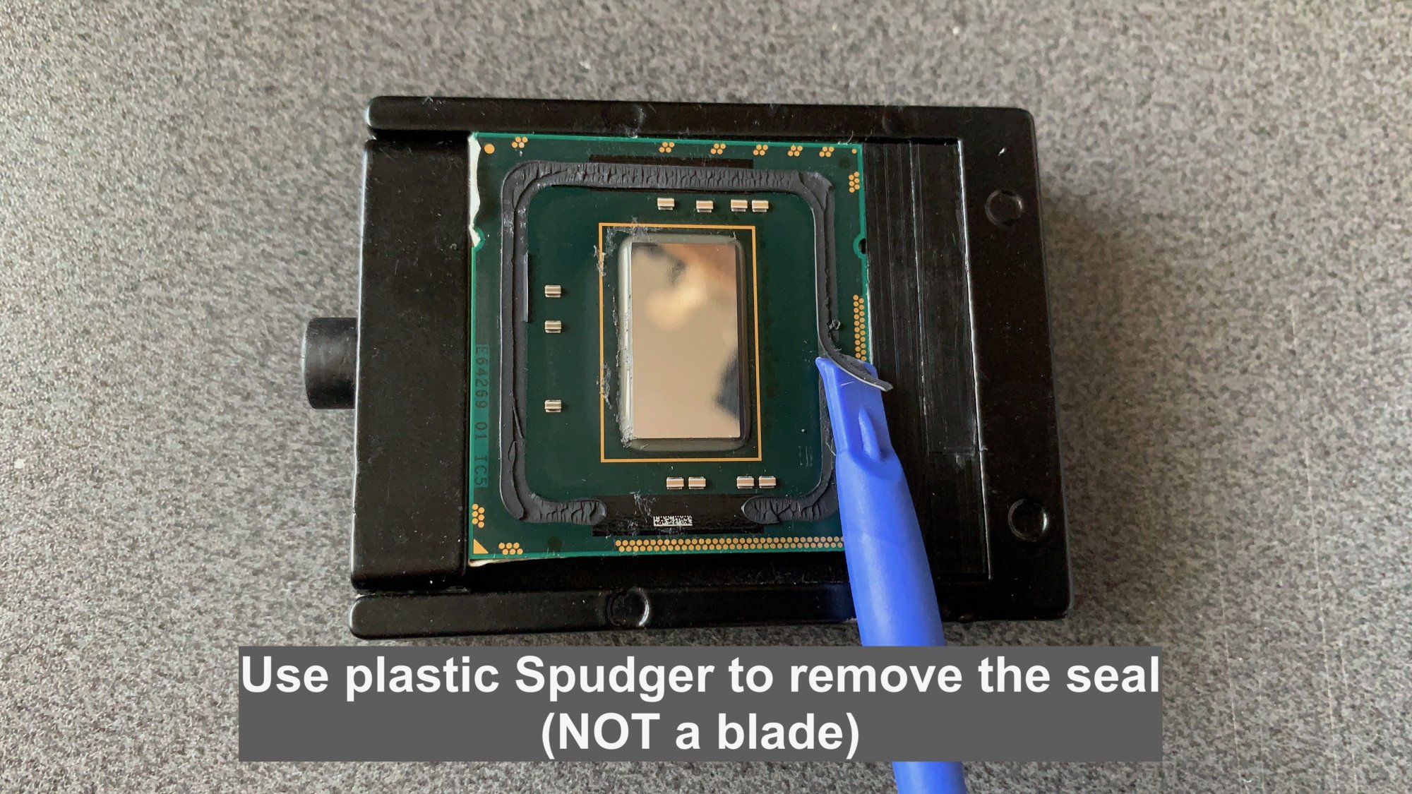 This step is relatively easy but tedious. The black seal does need to be removed since the plastic shield that Apple places onto the CPU rests on the CPU PCB and over where the seal is. So it must be removed.