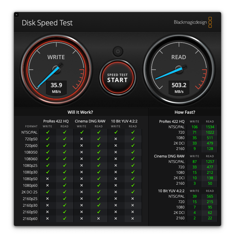 I used the blackmagic disk speed programm to test it. Also with regular tests with normal files that I transfered from the LaCie external harddrive to my internal harddisk the port seems to be two times faster, but never at the speed that I was looking for or was advertised.