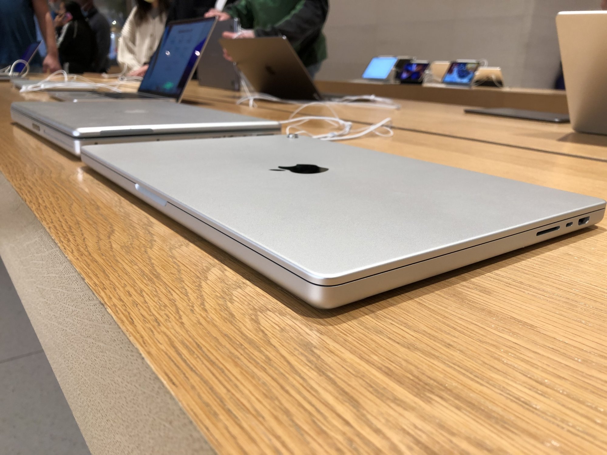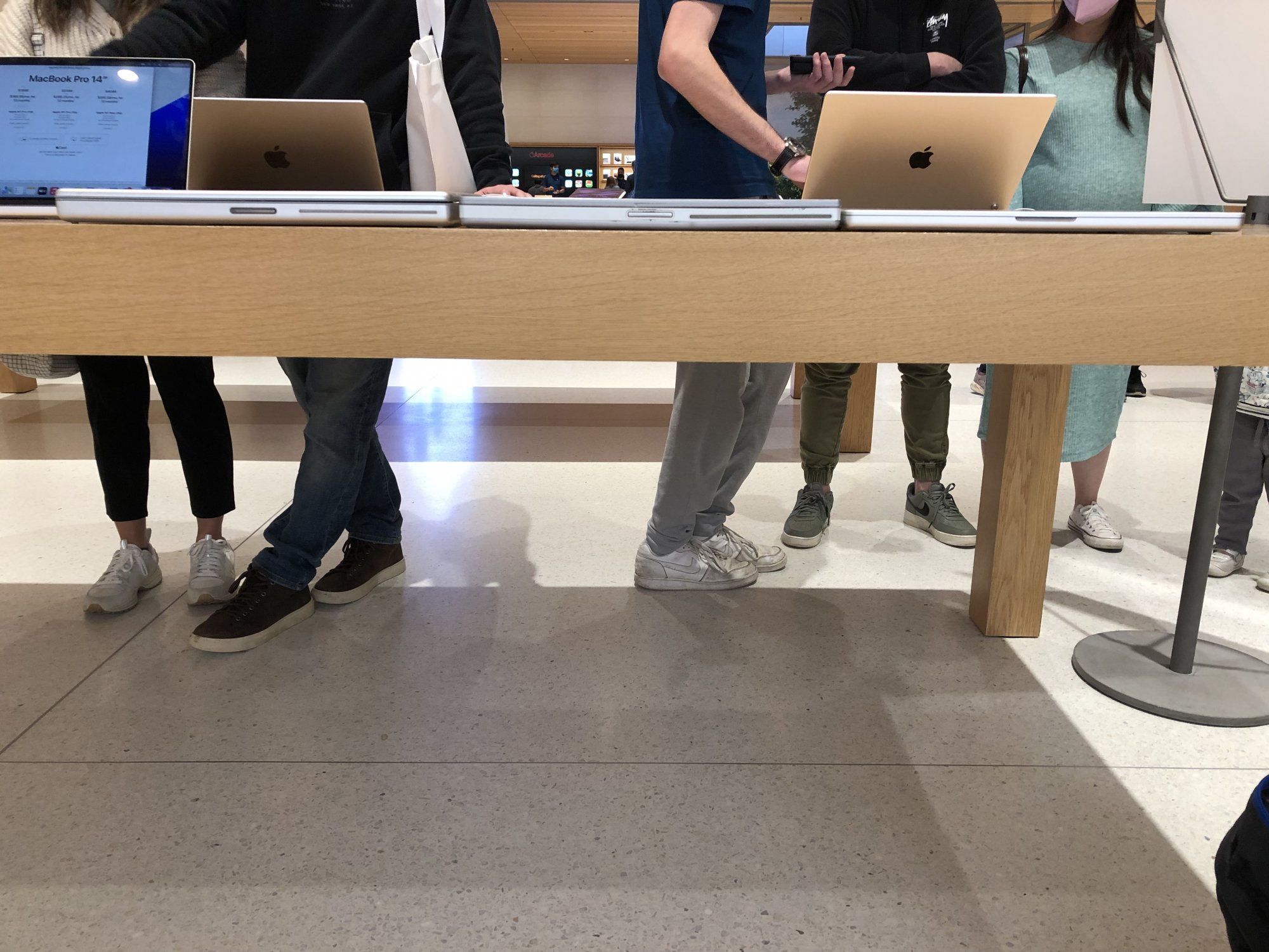 The demo units on display were just the M1 Pro models, which could probably suggest the chip shortage might be even affecting whats available in the store. During my time playing with the new MacBook Pro’s I listened in on a customers interest in picking up the 16 inch. I got some really surprising information from the conversation between the store rep and the customer. I was particularly impressed with how realistic the employee was with the customer, asking questions about their type of work, what are they planning on doing with the device and what are they currently using.