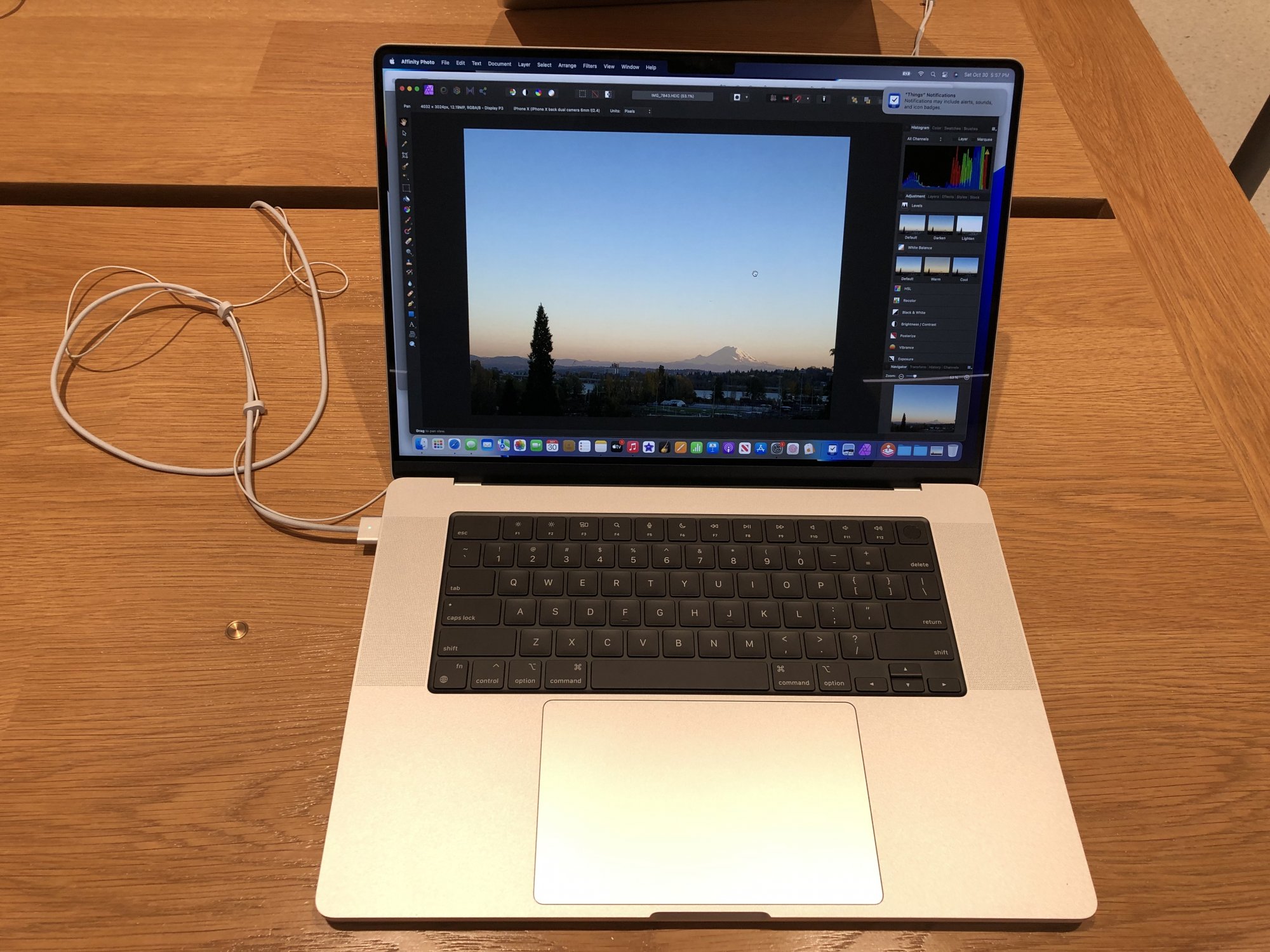As for my adventure, I did some ridiculous comparisons, but first, my experience with the 2021 MacBook Pro. Its, ok, I guess and I did spend quality time with it, lifting it up, feeling the aluminum texture, closing and opening the lid. Its naturally heavy, not unbearable heavy (this was the 16 inch by the way). It is a big device, but wouldn’t consider it too big to walk around with it. I airdropped a photo from my phone over to it and played around with it a bit in Affinity Photo editor. I didn’t do any bench marks, YouTube has all the answers to that, this was more of a hands on experience.