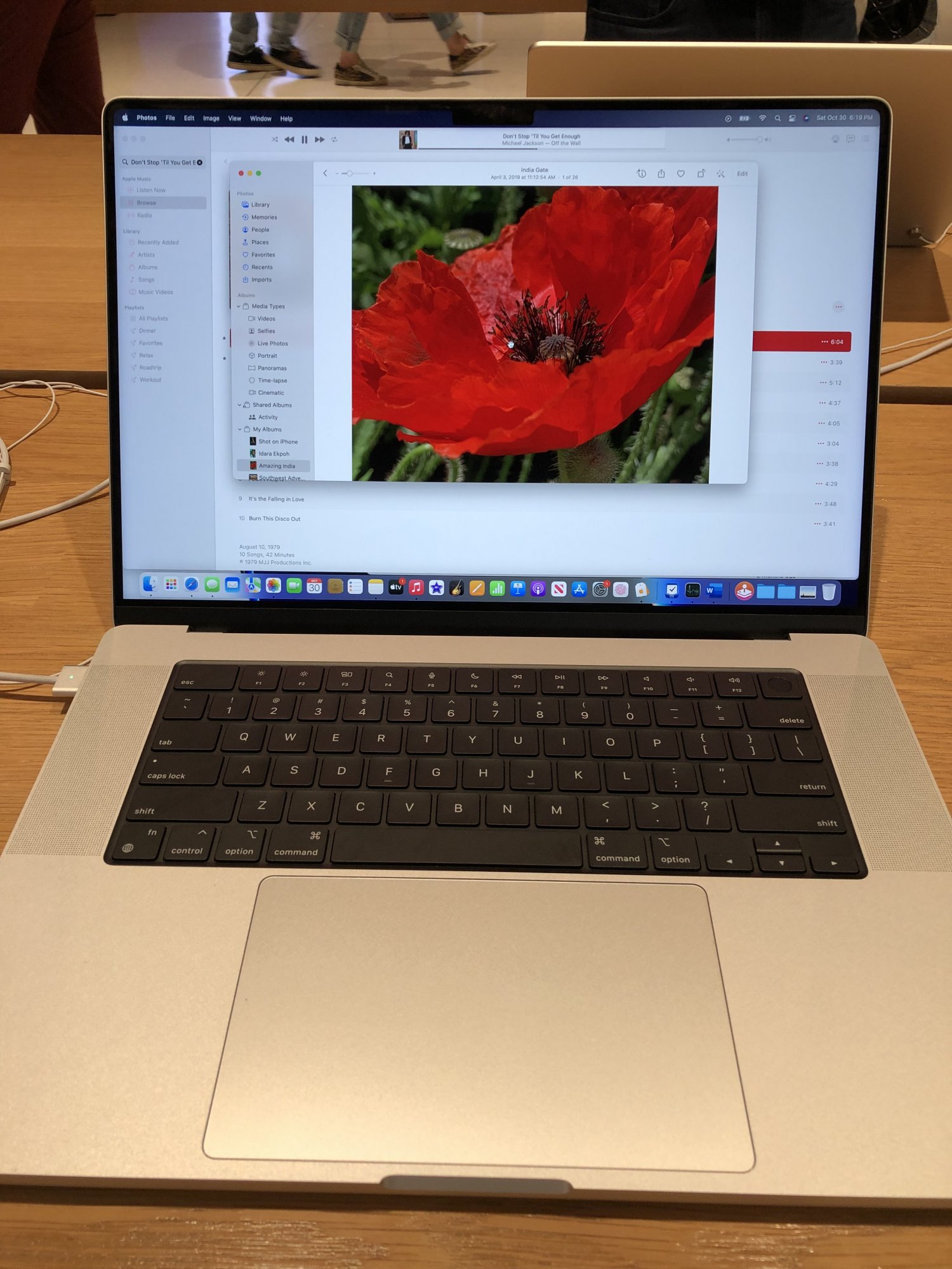 Audio was difficult to confirm if was really good, but I played Don’t Stop Til You Get Enough and I was surprised how much the bass, mids, highs and lows cut through the loud store. DSTYGE is cabal of various instruments layered with Michael’s voice, which is sharp and beautiful. It really stood out and across clear and enjoyable and didn’t even max it out much. You really don’t need external speakers if you have this.