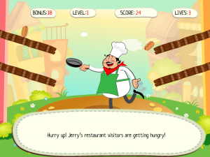 Jerry needs your help! His restaurant is very popular and fairly crowded. Jerry is in a rush to collect as many food items as possible to be able to serve them to his guests. Collect cheese, vegetables, fruits, cake, candy, ice cream, jam and other delicious goods into the cook’s frying pan. Pay attention to the items rolling down. You will encounter inedible objects that will take away your lives if you let them on your pan.