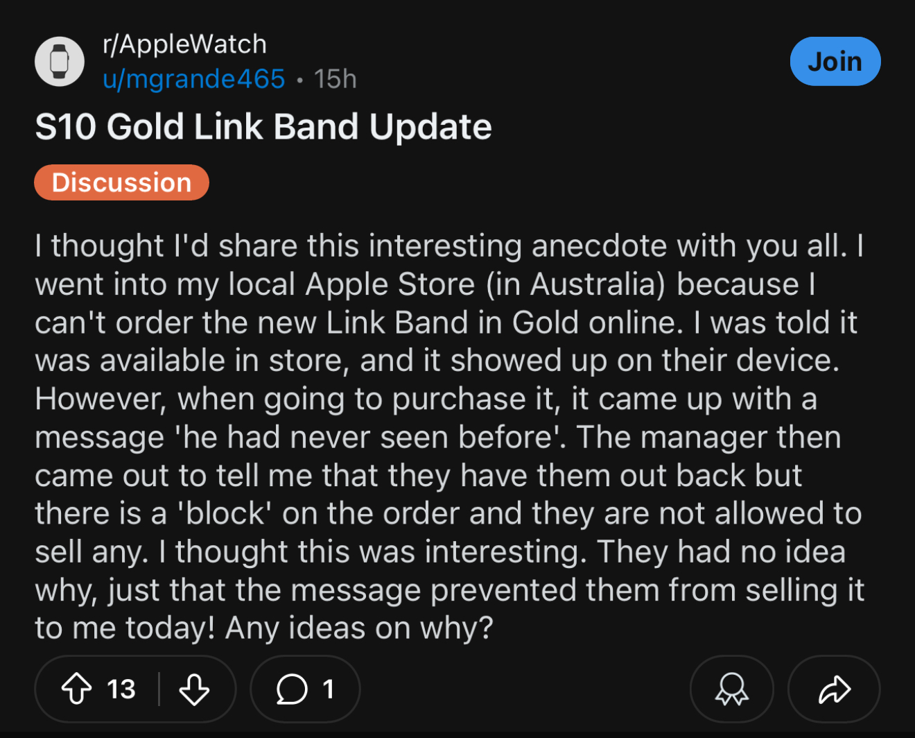 just picked up my natural link bracelet in 46mm after seeing it finally available at an Apple Store nearby. looks like they’re starting to slowly arrive at stores but doubt thats the case for the rose gold one