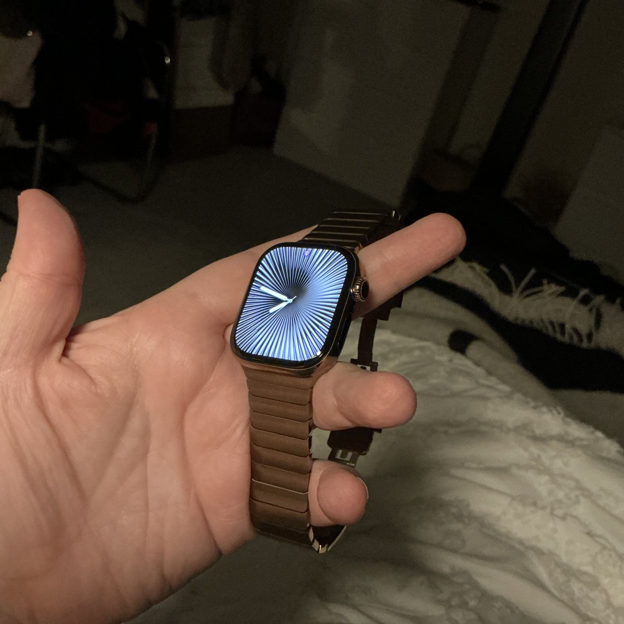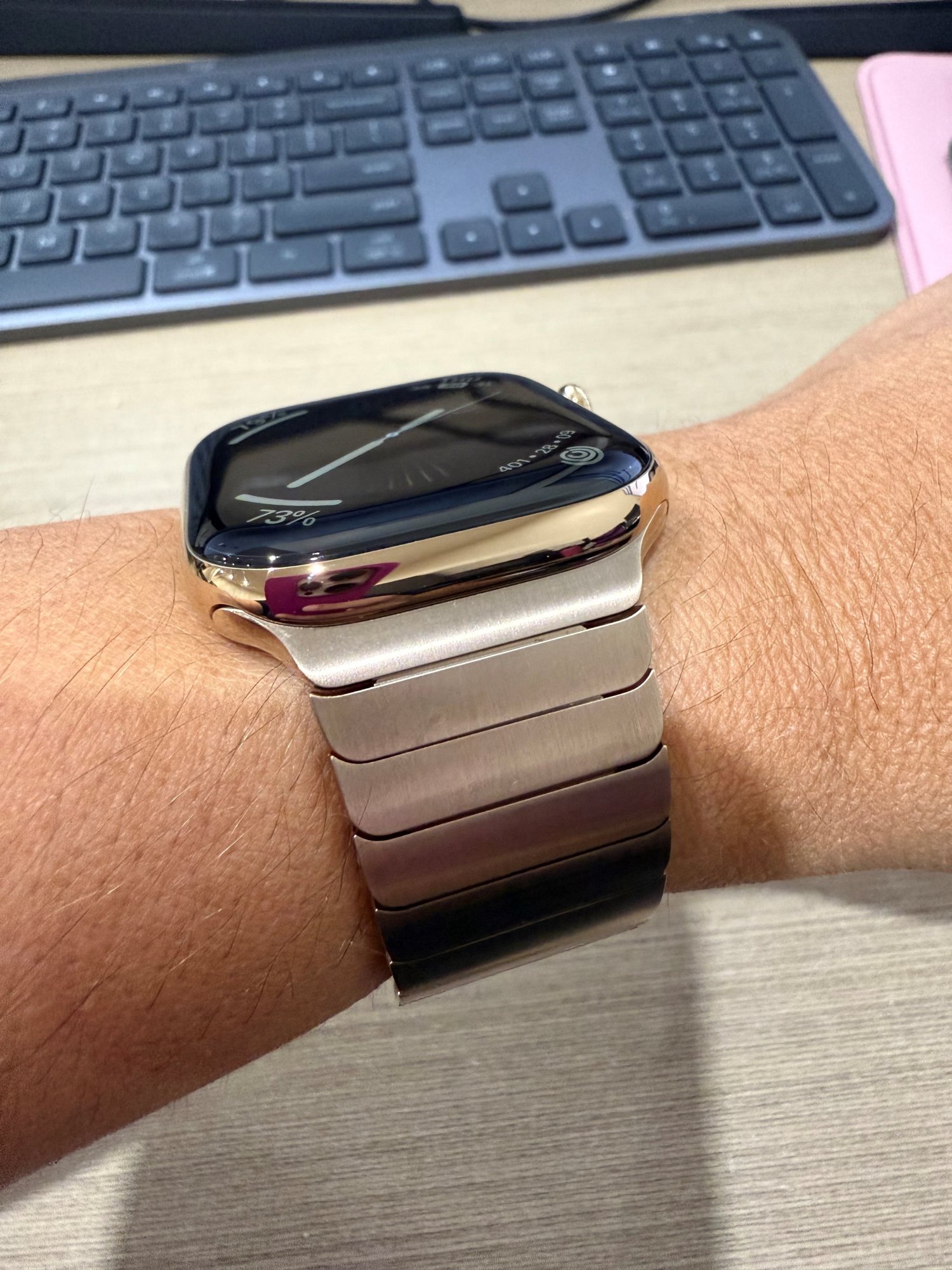 Wait is that the gold band? It looks like natural but maybe just the lighting.I finally ordered my gold link yesterday and it was delivered today. I have a 150mm wrist so took out all the links. I found in the heat it was a little tight so added 1 link in, now the watch feels a little loose but as I am wearing it, I am getting used to it. Very comfortable.