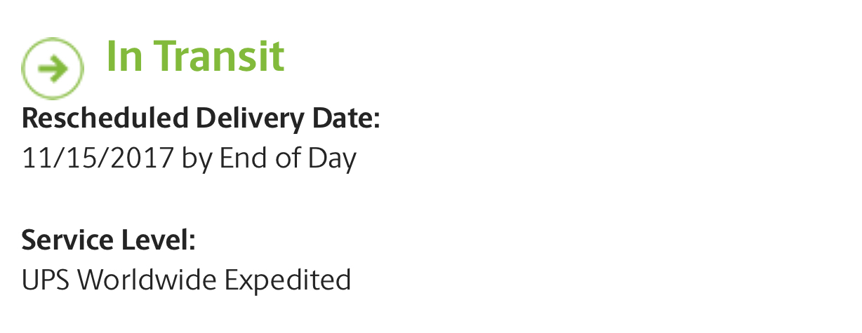 Interesting, seeing as my delivery date was actually scheduled for Monday, but I guess it’s better since my screen protector arrives Saturday. And it’s still one day earlier than UPS’ scheduled date. I just hope it arrives at the CC before 1 pm since the CC closes at 1.