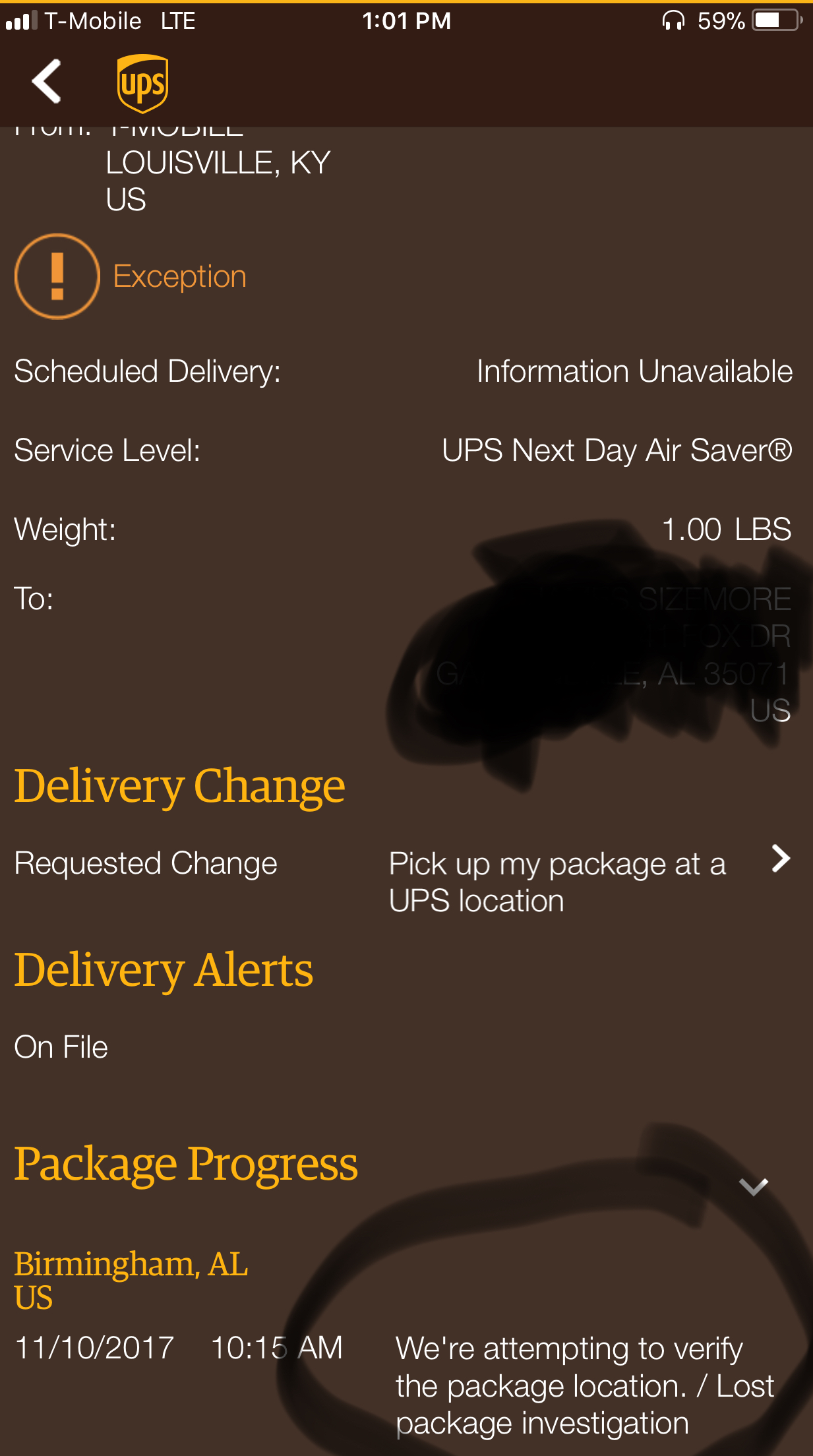 Just was able to get everything cleared thru T-Mobile and UPS. Have oredered another one. Hopefully comes as quick as the first one.