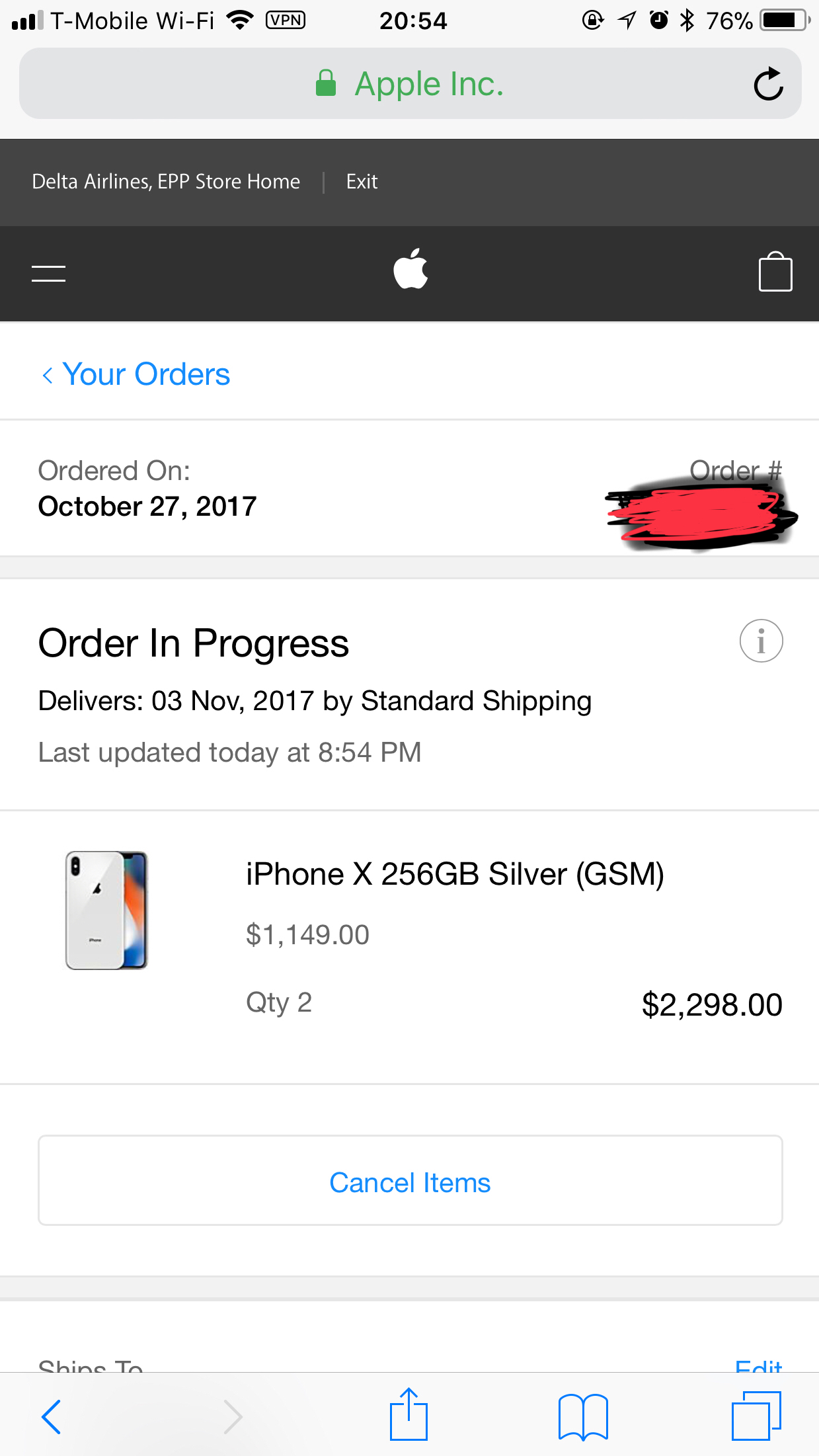 Ok this kind of got my hopes up here's why: Got my order in at 3:09AM EST. Paid in full for 2 Silver 256GB phones, T-MOBILE.Paid in full, yes. I'm 100 up front. Now, if it's sunny I'll be pissed haha. But I did post the pic of new date