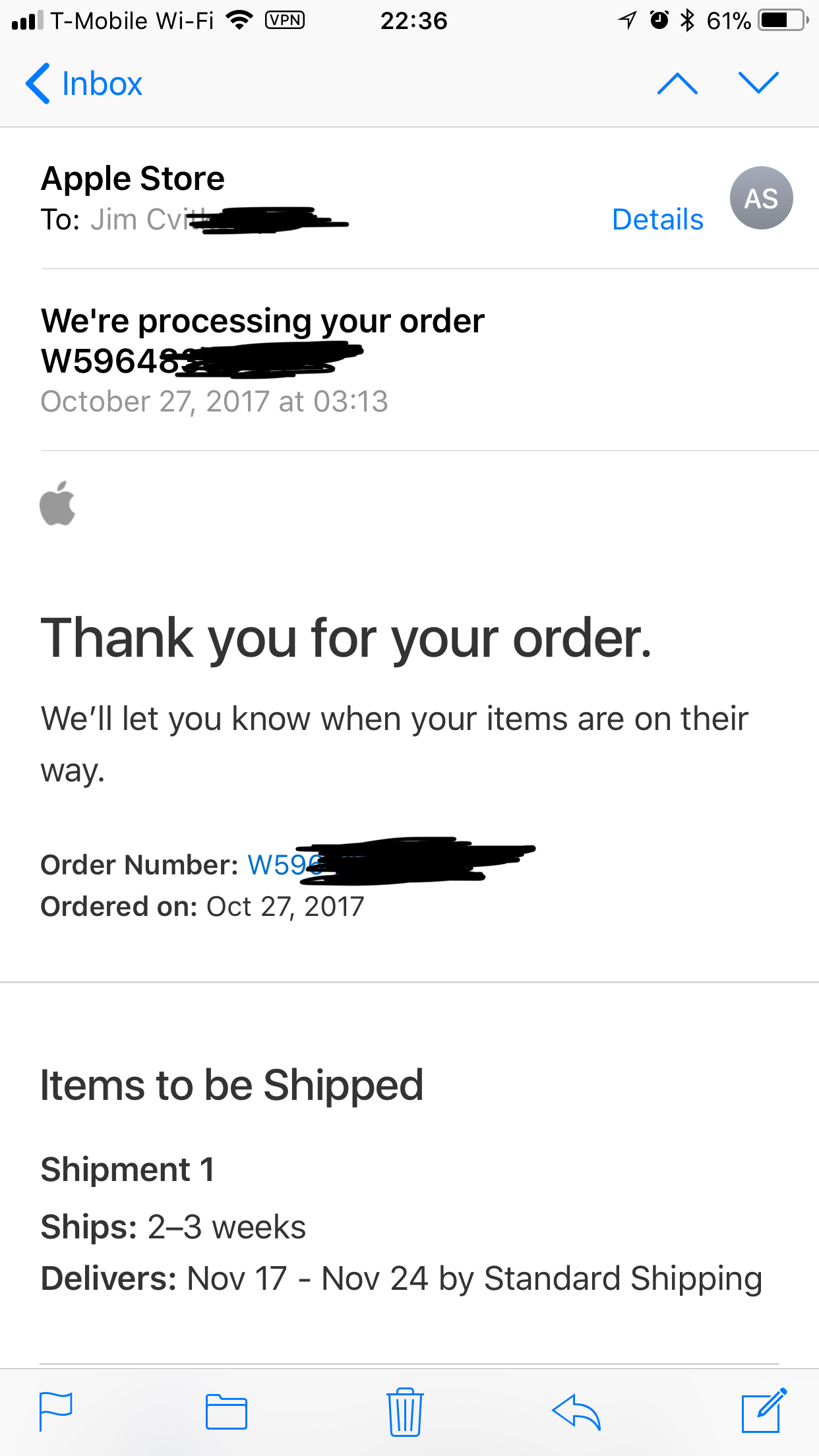 We literally have the identical same orders. The only difference between our situations is that my order was placed roughly 3 minutes before yours, yet my shipping date is still 2-3 weeks. You didn't do anything extra to reach out to them or anything right? It just...happened?TMo. Same as you. Email and order update from Apple's site