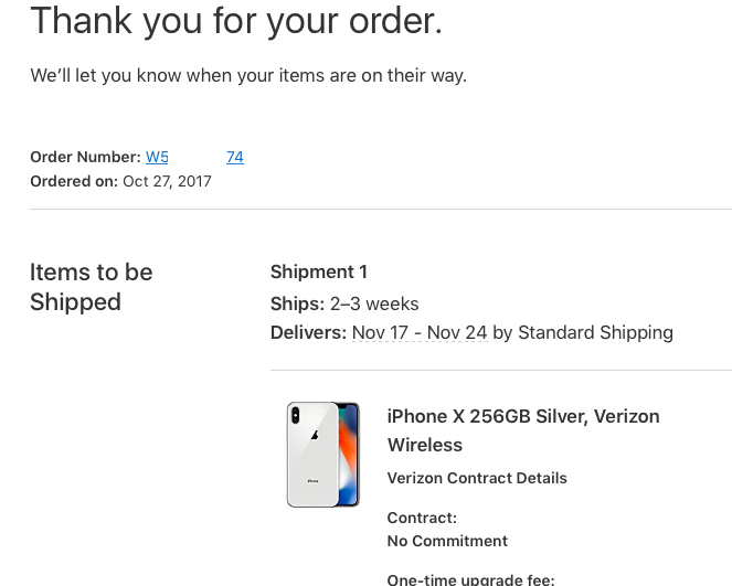 Anyone with a long lag time between order and confirmation email? I finished checkout at about 2:10 CT and I have an email confirmation received at 3:52 CT. I am confident about the order time as I ordered cases immediately after the phone and those were immediately confirmed at 2:13 CT. Similar timeline for my wife’s phone which was ordered immediately after the cases. Apple store app would not load on either phone until about 10/11 past the hour. We both have 11/17-24 deliveries for VZW 256GB one of each color through IUP.