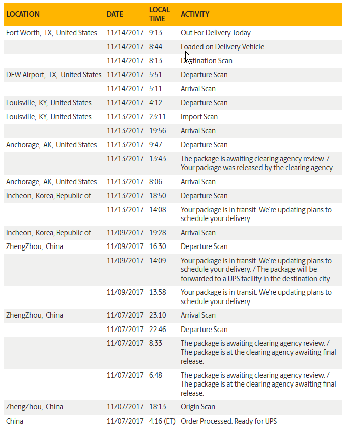 Maybe this will be encouraging. My phone sat in Incheon for 5 days with NO MOVEMENT. Then yesterday morning it finally started to move. It went from Korea to on a truck for delivery in Texas in a little over 24 hours. I'm getting my phone 2 days earlier than the expected delivery on UPS even. So it may take a while to get going, but once it does it moves quick.