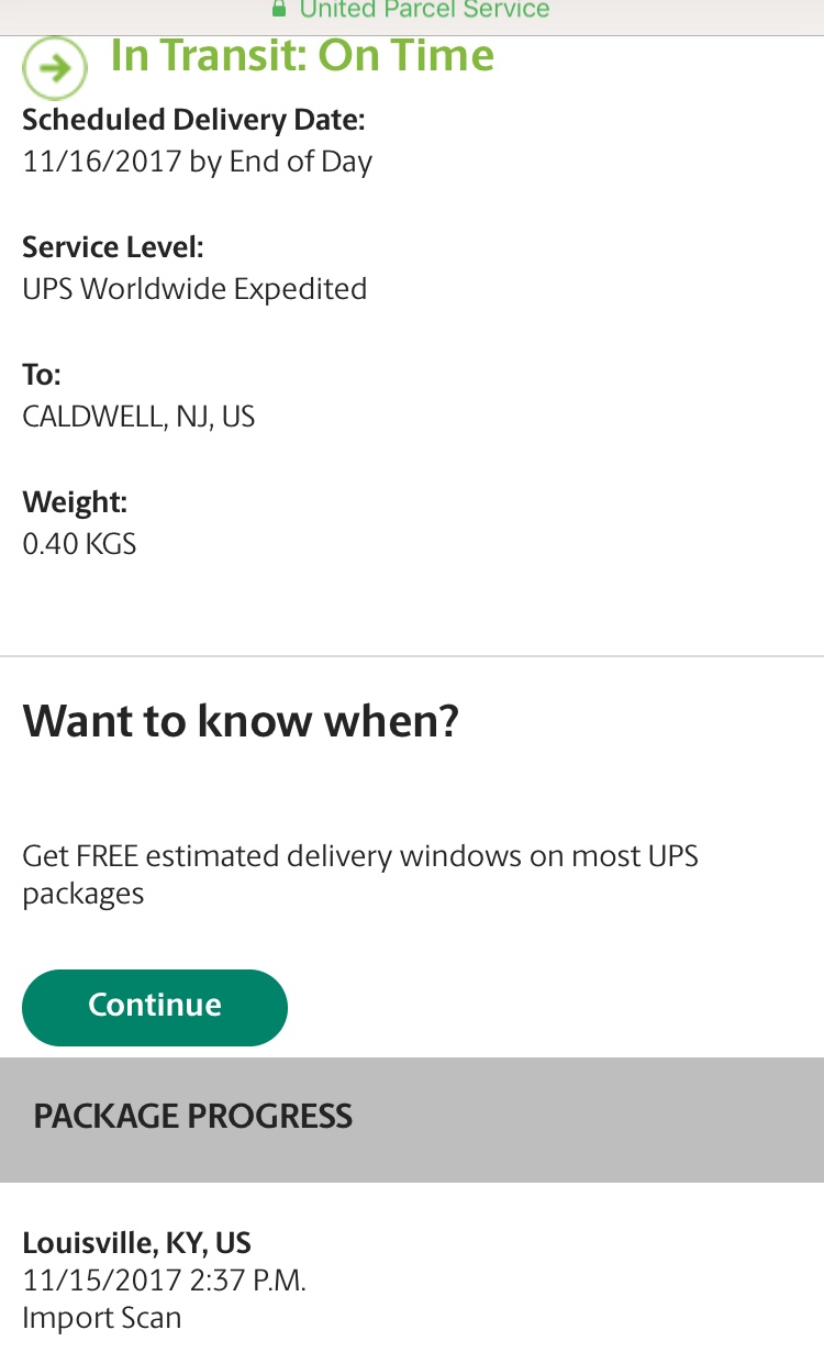 UPDATED FINALLY! Import scan less than half hour ago. Hopefully leaving sometime today or overnight for delivery tomorrow. Delivery status back up and remains 11/16 delivery.Finally got my Import scan after sitting in Kentucky for over 72 hours... Still no movement since then which was about 4 hours ago but at least it's something.