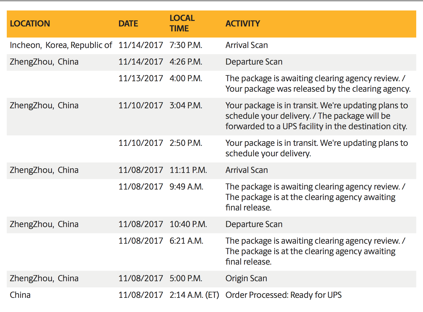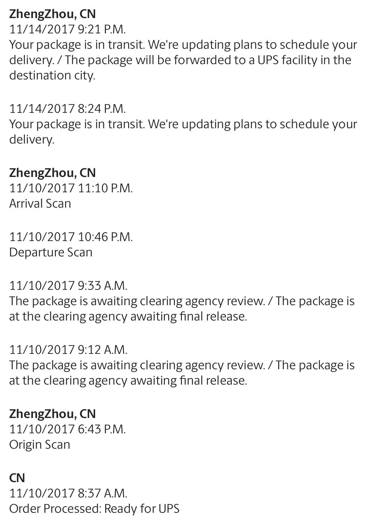 Yeah that's not happening. UPS has completely dropped the ball these last 2 weeks.I was promised by multiple UPS people a 11/16/17 delivery date. But it is still in Korea!