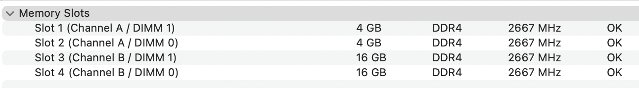 I have the 2020 intel iMac that came with 2x 4gb ram and I bought 2x 16gb ram of the correct specs from OWC and added it so that the modules are arranged like this.