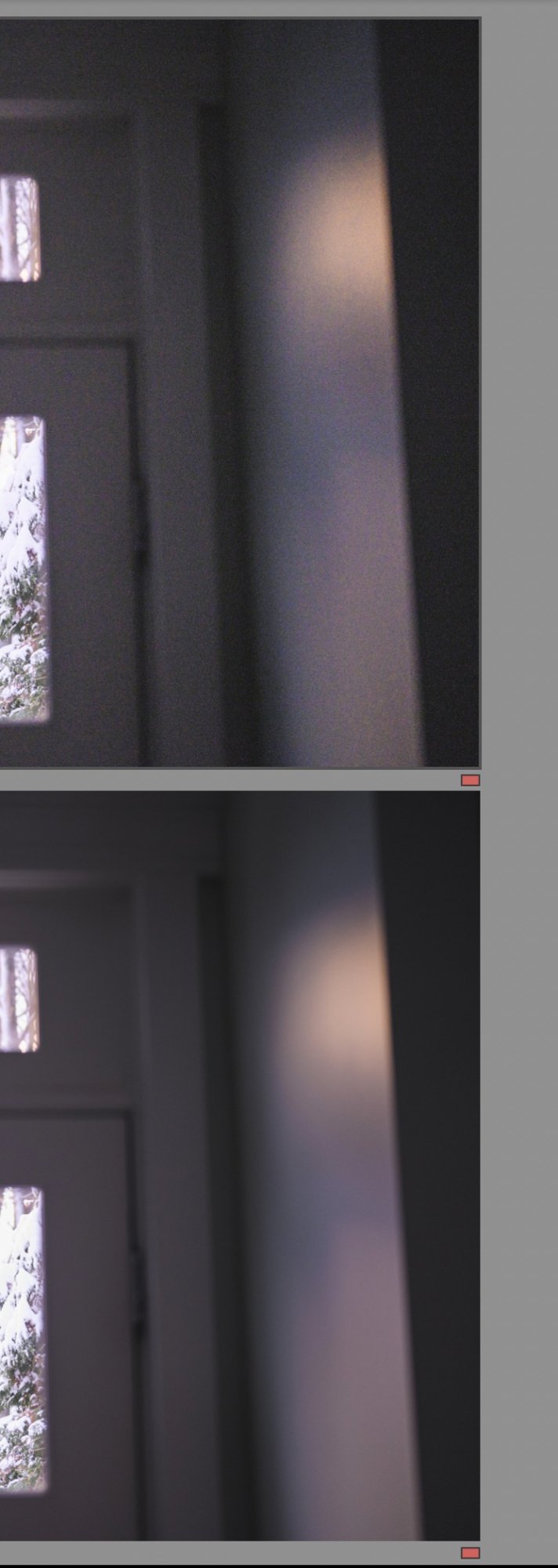 In my case, I ended up with a four stop difference for the interior portion of my image. I shot this image on a Nikon Z6, which has one of the best dynamic ranges in a camera, and also a relatively smaller sensor (24mp) which is well noted for good noise handling. If I increased the exposure of my "window" reference image 4 stops to get to the wall color of my "wall" reference image, I introduced a TON of noise. Sure, I could probably run it through a noise reduction program of choice, but why would I do that? The image exposed properly for the wall has zero noise.