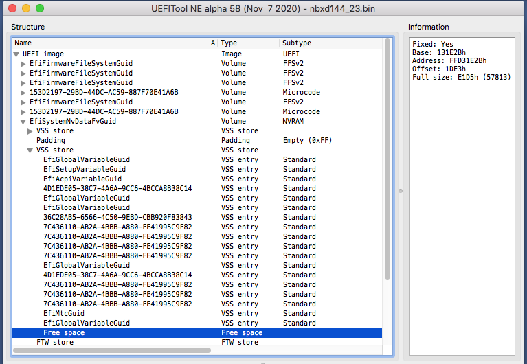 VSS2 was empty only for the first 4 reboots after the deep NVRAM reset and your tool was correctly reporting it as empty. After the 4th reboot, the VSS2 was still empty, but the free space of the 1st VSS was already below 7000 Bytes:
