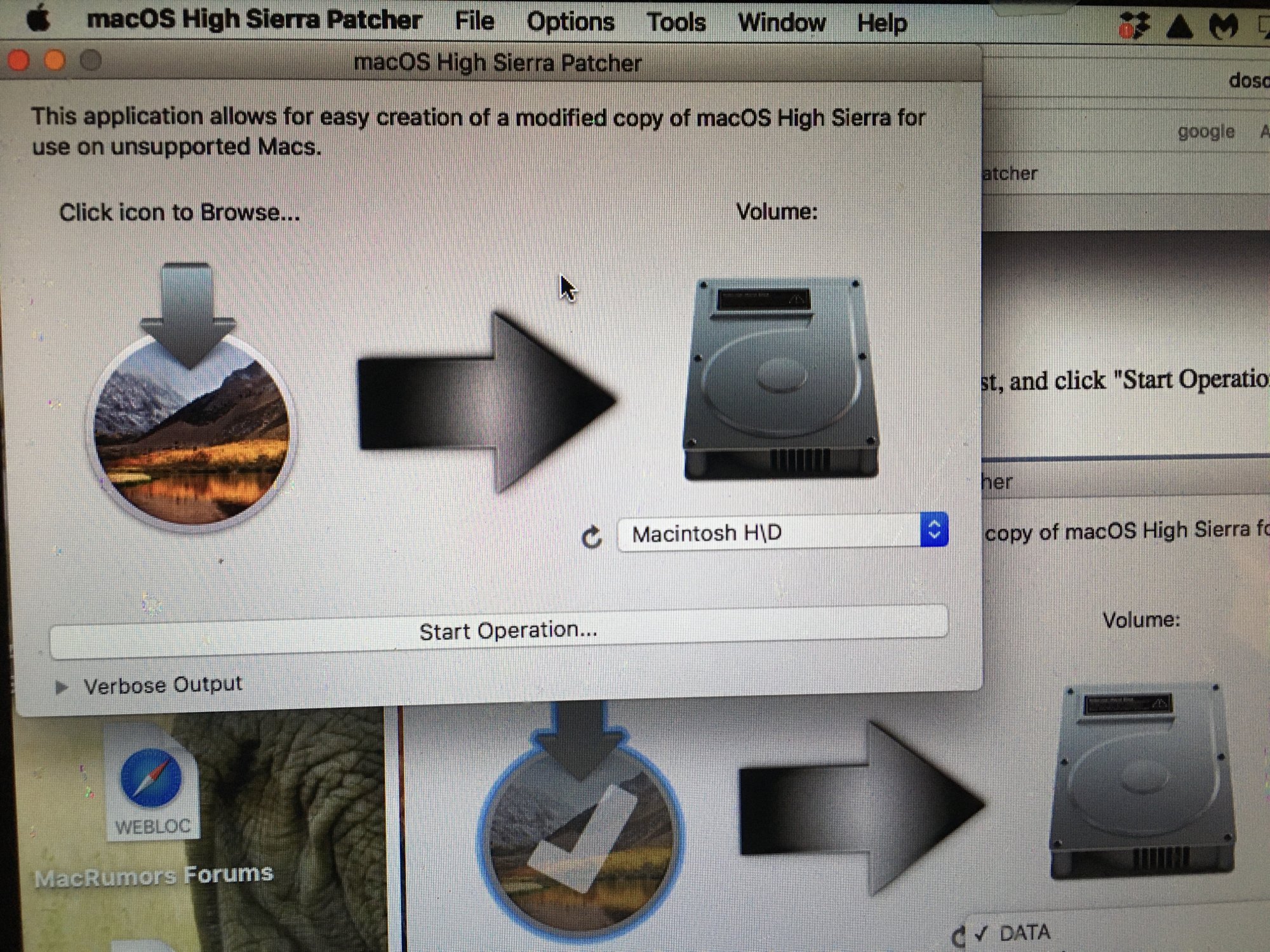Decided to give this dosdude method a try. Is next step “start operation”? As you can see, the patcher right now is listed in the disk utility.