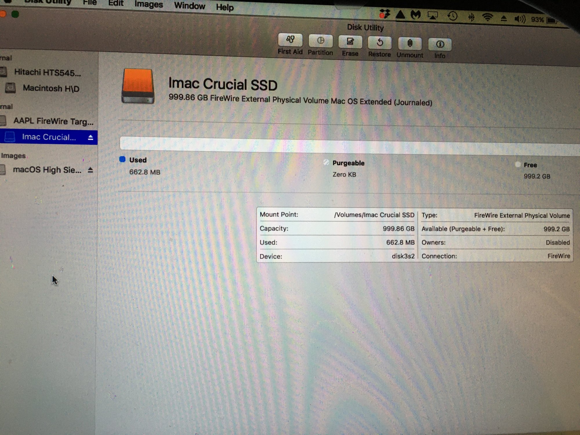 4) Open Disk Utility and format the iMac Crucial SSD as GUID, Mac OS Extended Journaled.