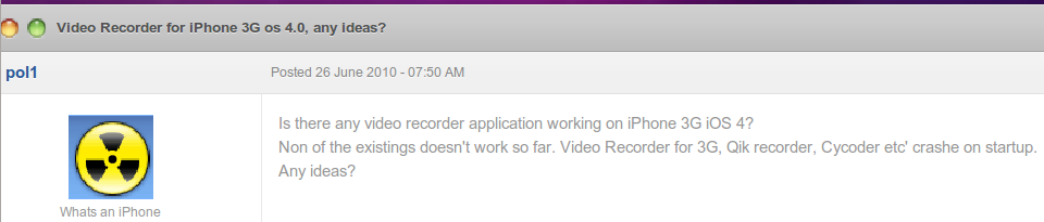 ● What other Video Recorder compatible in iPhone 3G 3.1.2 firmware (incase Cycorder isnt compatible)?