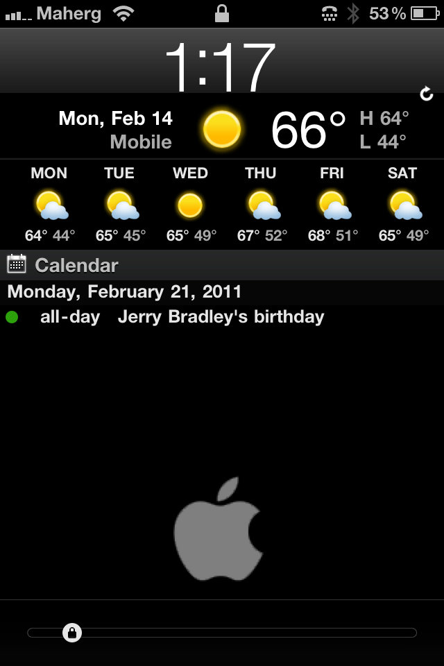 1. How can I add a white apple logo to my lock screen. I would like it center and small enough to fit under the SMS and above the sliding unlock bar.