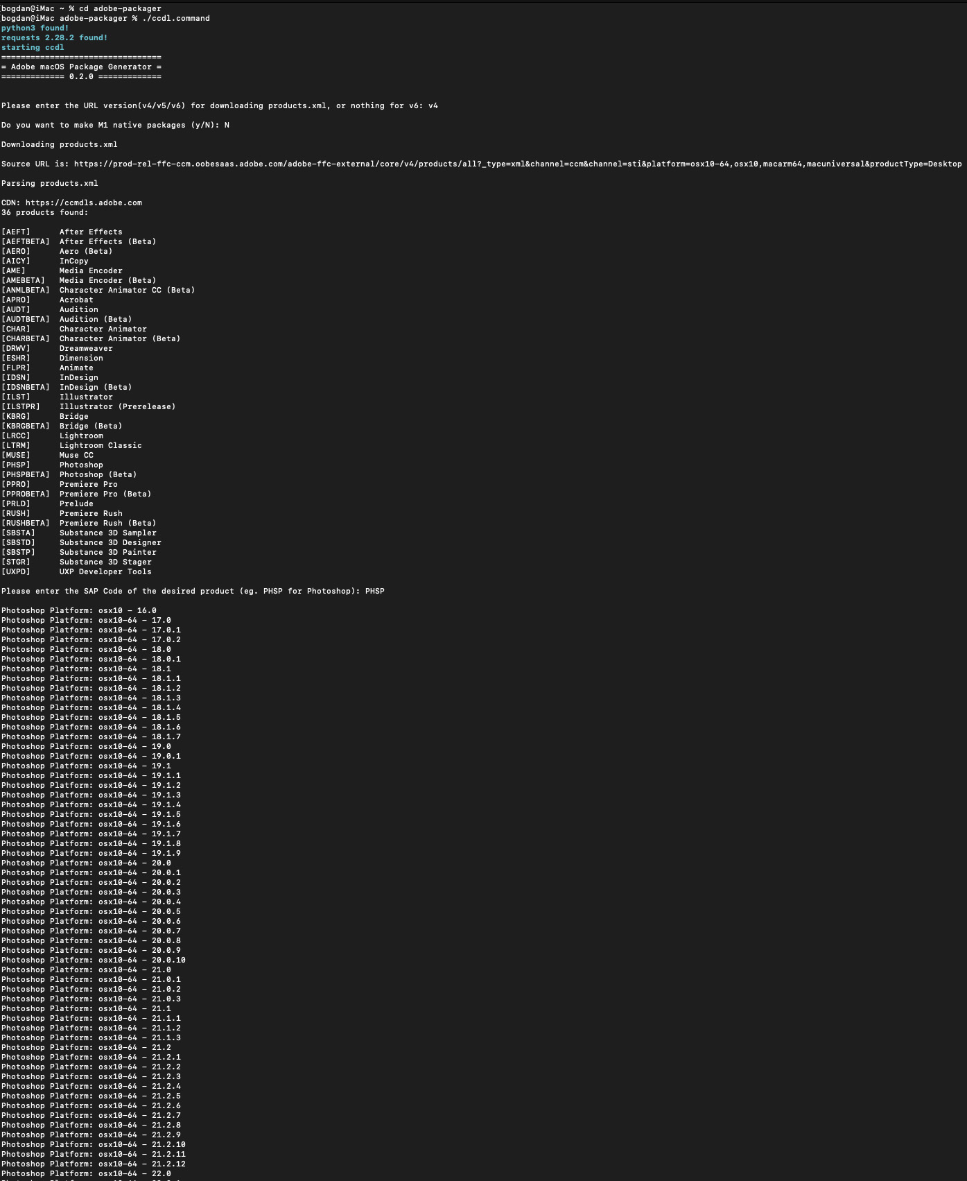 So I have some older Macs I still use from ~2009 and it seems Adobe dropped support for those older CPUs after 2020. Basically I need the installer for Photoshop 2020 v21.x. Thats the last version that will run on my 2009 MacBook Pro. I have the latest creative cloud installed and it does let you pick older versions of Photoshop but the oldest version available that way is v22.2 which doesn't work. Searching online people have said that Adobe support can give you even older installers and I tried that but the oldest they have via direct support is v22.0 which still doesn't work. Seems like the only way to get v21.x is from someone who backed it up when it was still available. I believe it will still work and activate fine with the latest creative cloud app.