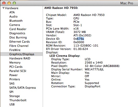 Graphics ATI Radeon HD 7xxx 3072 MB (7950 I don't know why About this mac lists it as 7xxx)
