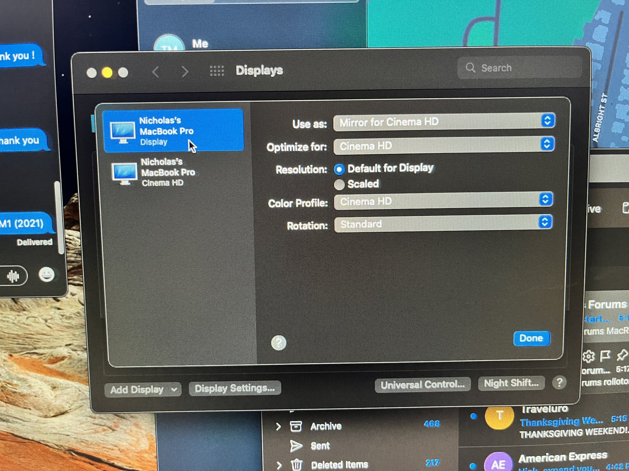 Hi everyone -- I just purchased two 30" Apple Cinema Displays. I am using two USB-C to Dual-Link DVI adapters to plug each of the Cinema Displays into my 2021 MacBook Pro M1. One display works perfectly -- it is detected by my MBP M1 as "Cinema HD" and works instantly. The other display is detected simply as "Display" but does not power on at all. I have tried plugging it into another AC outlet, tried plugging the USC-C adapter into another port on the MBP M1, and have unplugged and replugged the display and the connecting cables several times -- all to no avail. It was working just fine when I went to inspect it earlier today -- this only happened after I brought it home and tried to set it up at my place. Am I out of luck? What should I do?