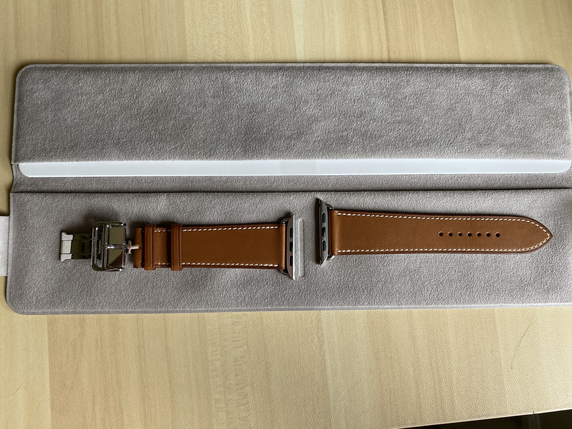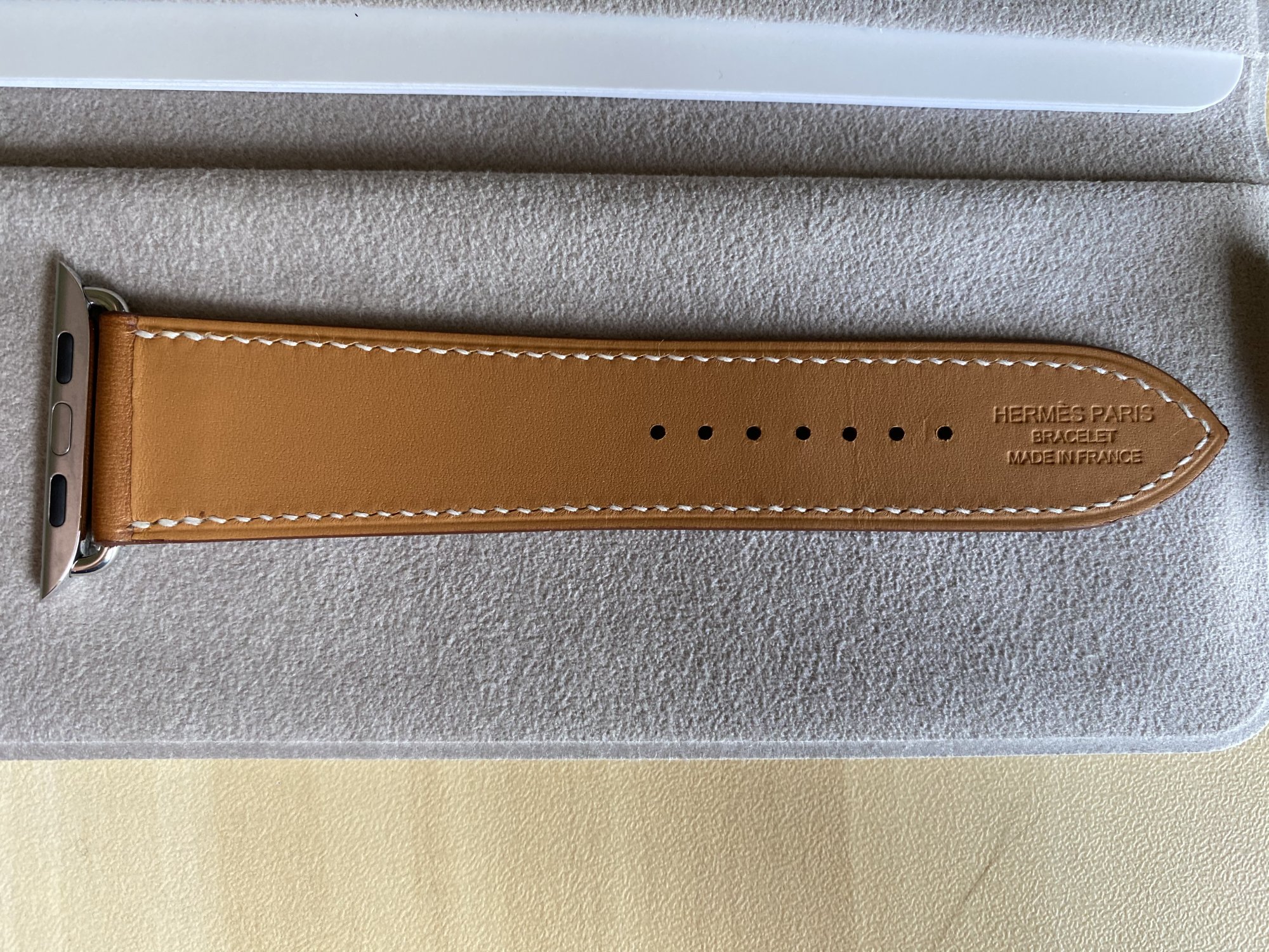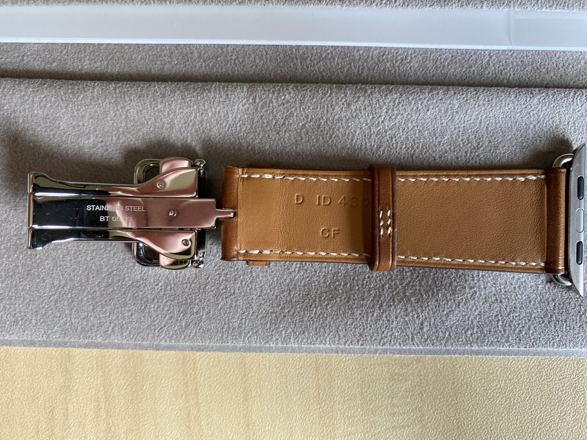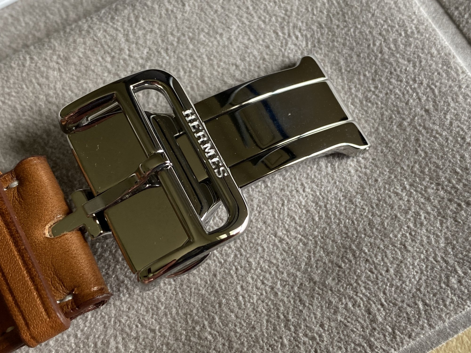 Fauve deployment purchased on eBay arrived today. Came in an Hermès box with ribbon, had the microfiber pouch and paper literature. Thoughts? It seems to have all the right markings for a legit band to my untrained eye.Usually Occam’s Razor has you covered. If the lugs have the MfW markings and they have the box, it’s unlikely they went to the trouble of faking those aspects. There’s a lot of legit sellers on eBay and Posh and Mercari. The Japanese sellers mark up by literally 200%. Feel free to post any you’re looking at here and we can suss it out.