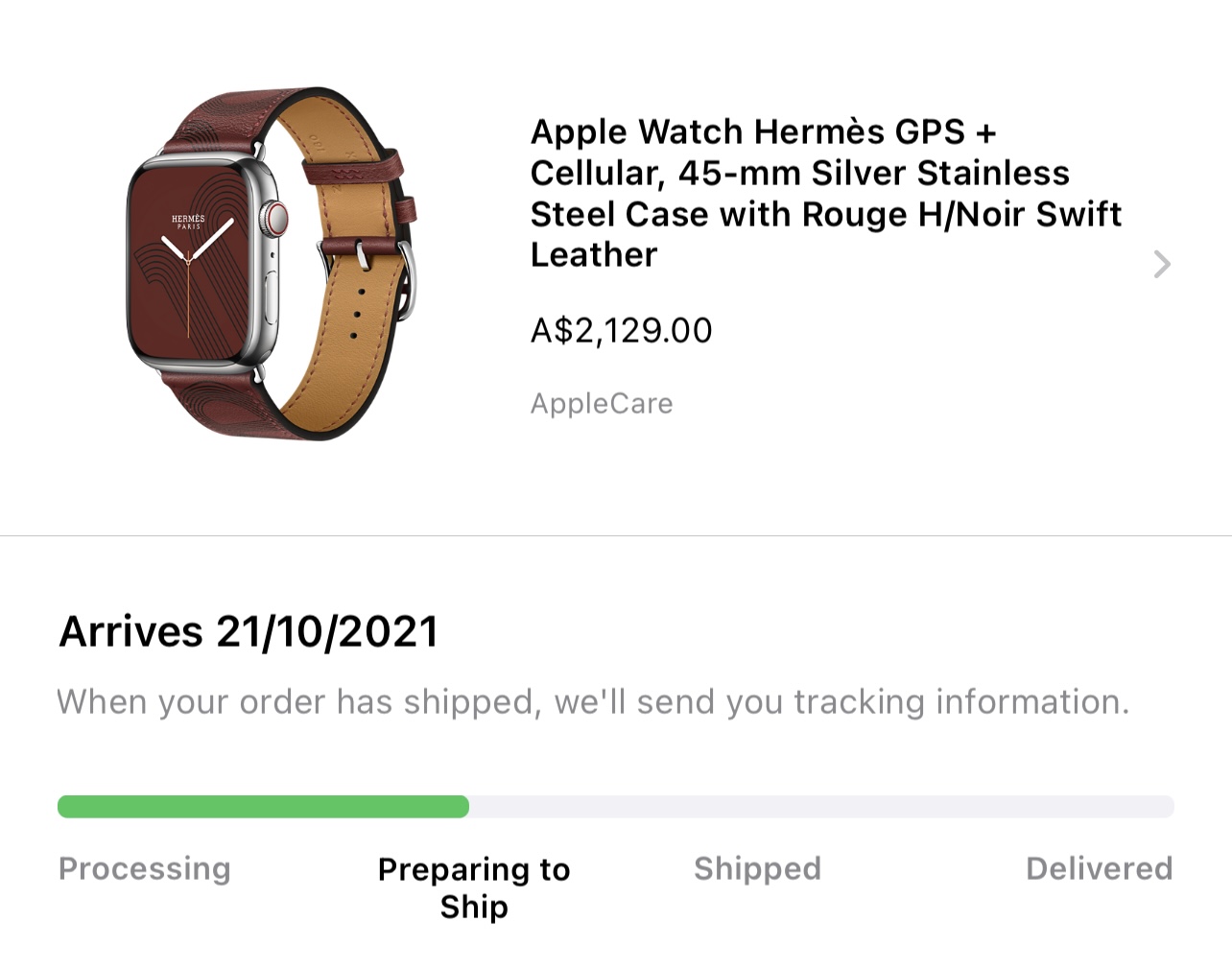 I’m sure the delivery date will update to the 15th once it actually ships.45mm Hermès now preparing for shipment. But my delivery date is 21 Oct?