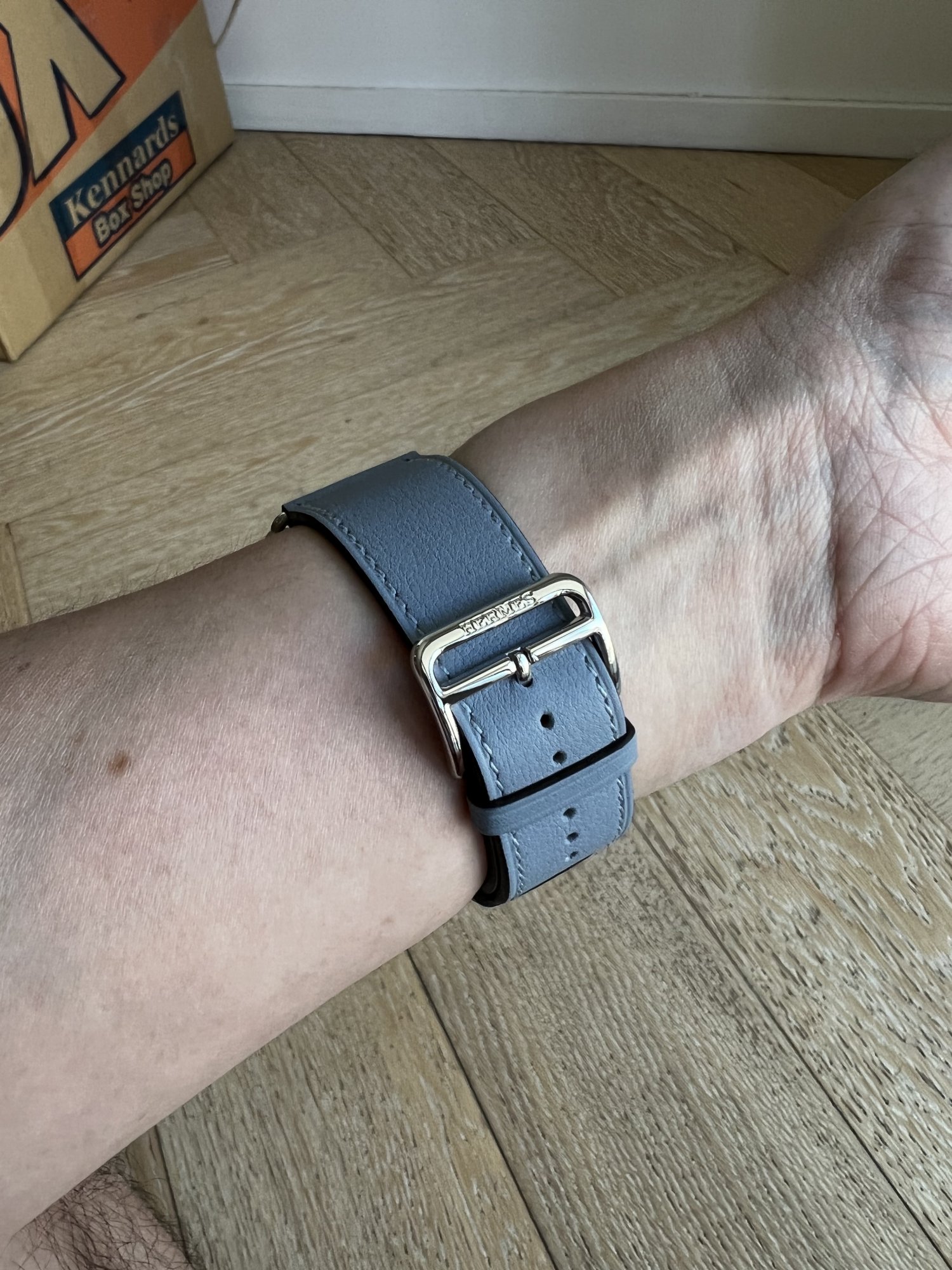 When I had the first strap, it was EXACT same thing. Too difficult to put in and was very difficult to take off. The second strap (much better in leather quality, no loose thread) was much easier to slide in."ASMR" Apple Watch Series 7 Hermes Edition Unboxing! | Zahar Mobile Review