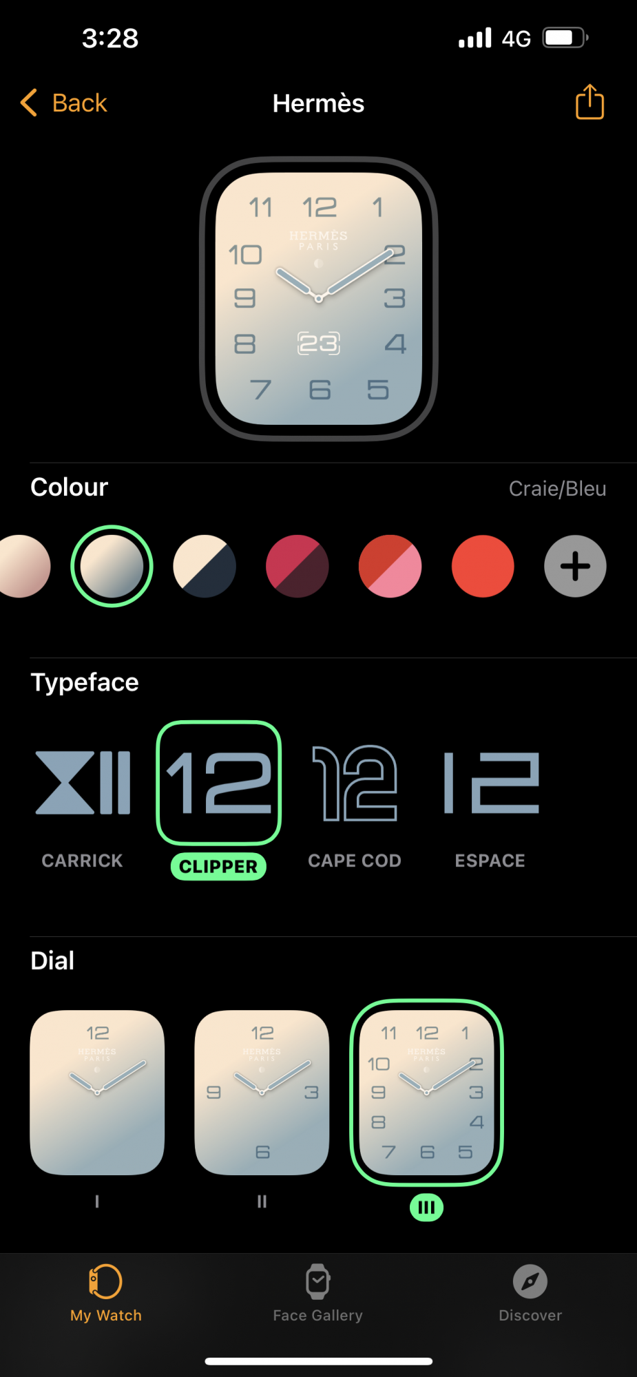 They’re under the standard Hermès faces as a different colour option. Press + to add colours and they’ll appear.Also, random other question… what happened to the older custom Hermès faces? I can’t find the phases that are split in half as the hands move around. They matched the bands from a previous release. But I can’t find them at all on my Series 7?