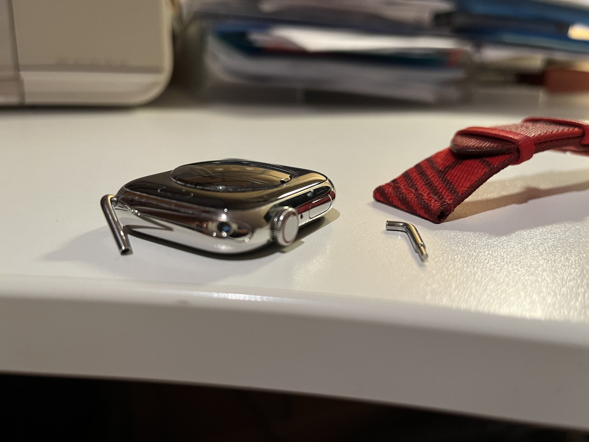 I had originally intended to get the new Swift Lime leather strap, but as that one turned to be (in my eyes) inferior in colour and leather type to the older Epson Lime strap (which I‘ll keep hunting on ebay), I ended up getting the Kraft/Lime Jumping band instead. It is bright and subtle at the same time and I like it very, very much. I always enjoyed the Woven bands from Apple (and still have almost 20 of those), but the Hermès nylon strap is in a whole different class.