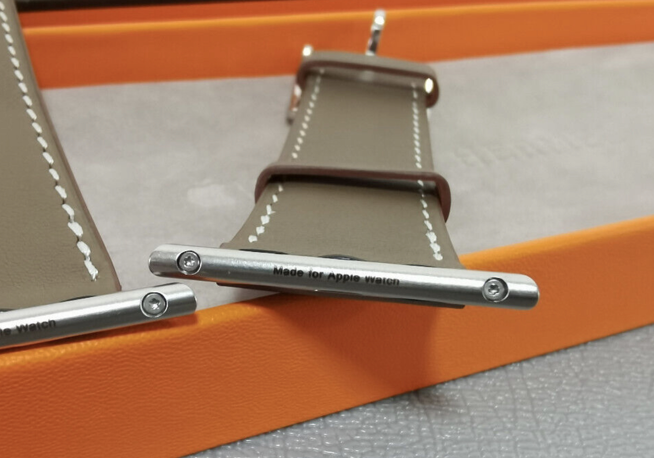 APPLE WATCH HERMÈS - 44mm White/Dark Gray/Gold Swift Leather Single Tour Band - $244.99. FOR SALE! Very Good condition, open box. May Contain Blemishes/Scuffs/Dust from normal wear and tear. May Contain Blemishes/Scuffs/Dust from normal wear and tear. Very Good condition, open box Pulled from a...