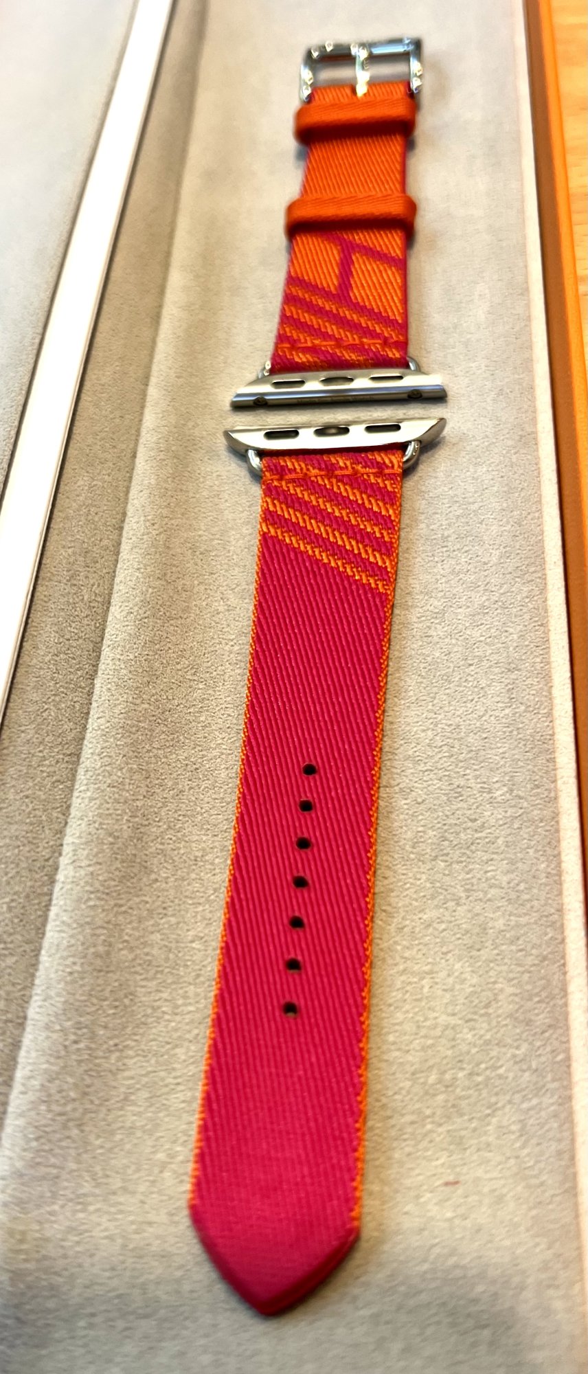 The band is also available from Hermes USA in 45mm for those who can not get used.Three seconds with a wet cotton swab and my mint Biscuit/Bleu with one imperfection is just a mint Biscuit/Bleu. Pops so hard in person.