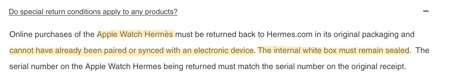 Here are the terms & conditions on the Canadian Hermès store online for Apple Watch: