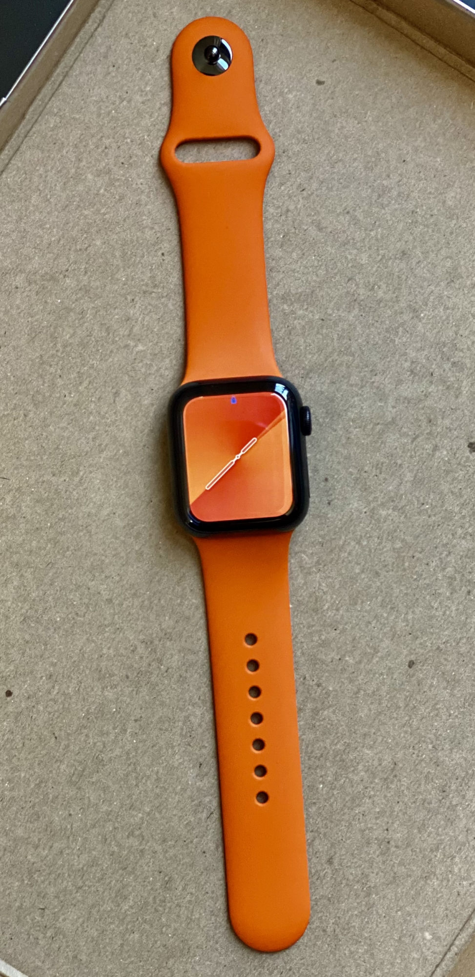 That band matches everything. Hermes Orange is incredible.Yesterday I couldn't hold back the excitement of having the new Hermes SB and, in addition to the sport black band that came with it, I bought on eBay (very good price I must admit) the sport Hermes orange one 🫰.